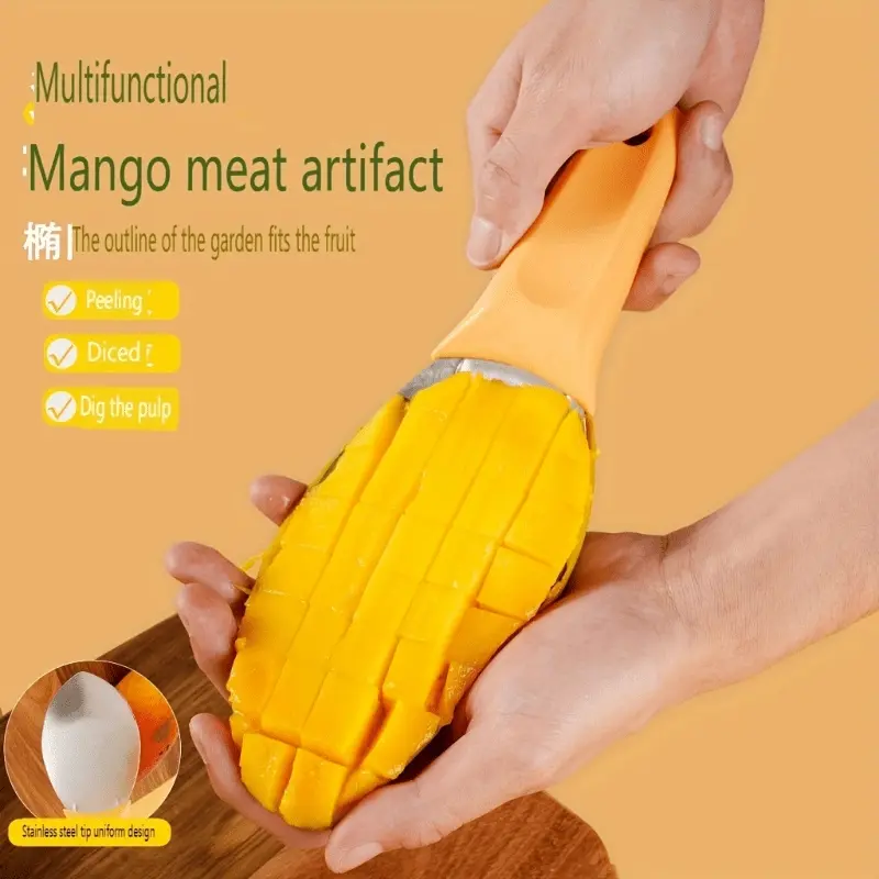 Purchase 1 set of mango processing tools, including: mango peeler, mango slicer, creative mango knife, mango scooper, mango peeler (duplicate item), stainless steel grooved slicer, mango knife (duplicate item), mango core remover (kitchen tool).