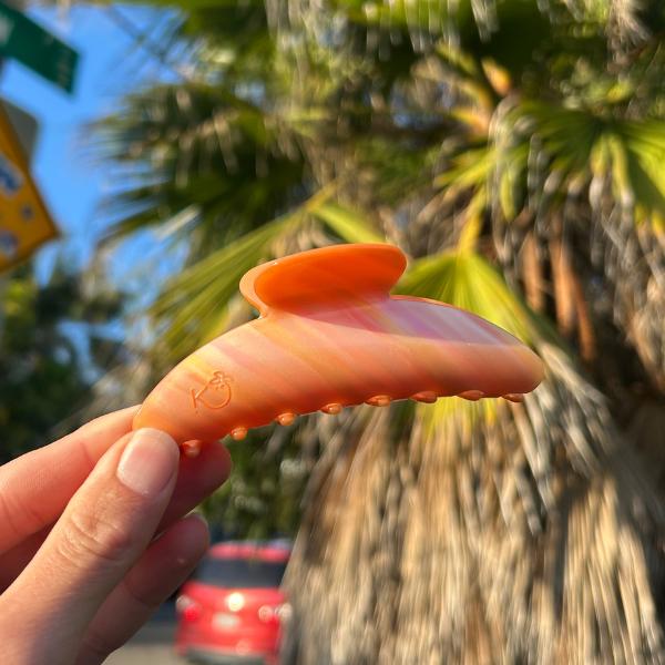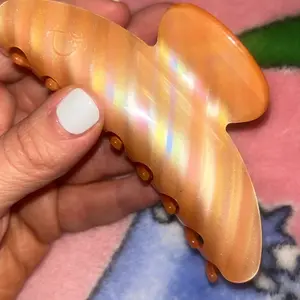 Super cute orange hair clip I got. Hair kips, really light.I forget, I have it on sometimes