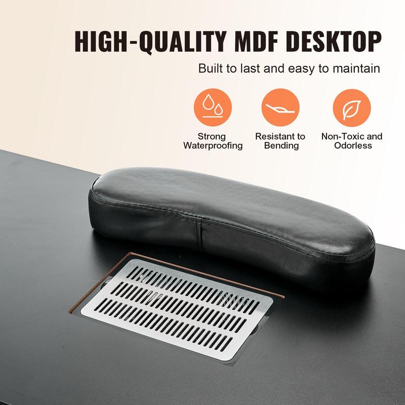 • Strong Suction Dust Collector: No worries about flying nail scraps and dust! VEVOR manicure table is built with a powerful electric dust collector, with one click to quickly collect crumbs and debris during manicure sessions. With 3 reusable dust bags included, maintaining a clean workspace has never been easier.