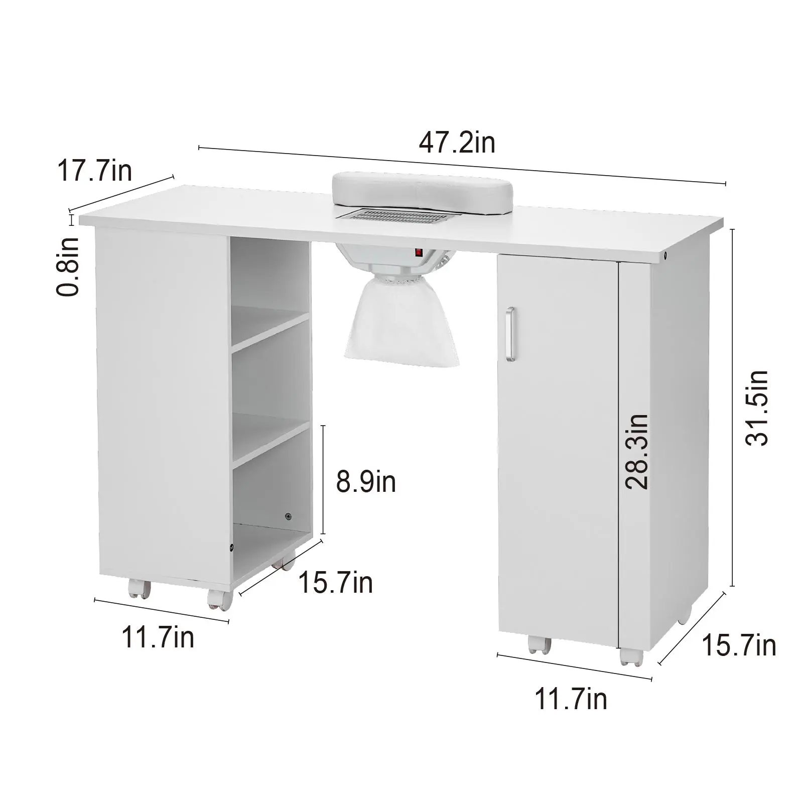 • Versatile & Fashionable: Beyond a manicure table, our moveable manicure nail art station serves multiple purposes—it doubles as a makeup table in salons and bedrooms or as a computer desk in the living room. Whether for commercial or home use, it's the perfect choice for versatility and functionality.