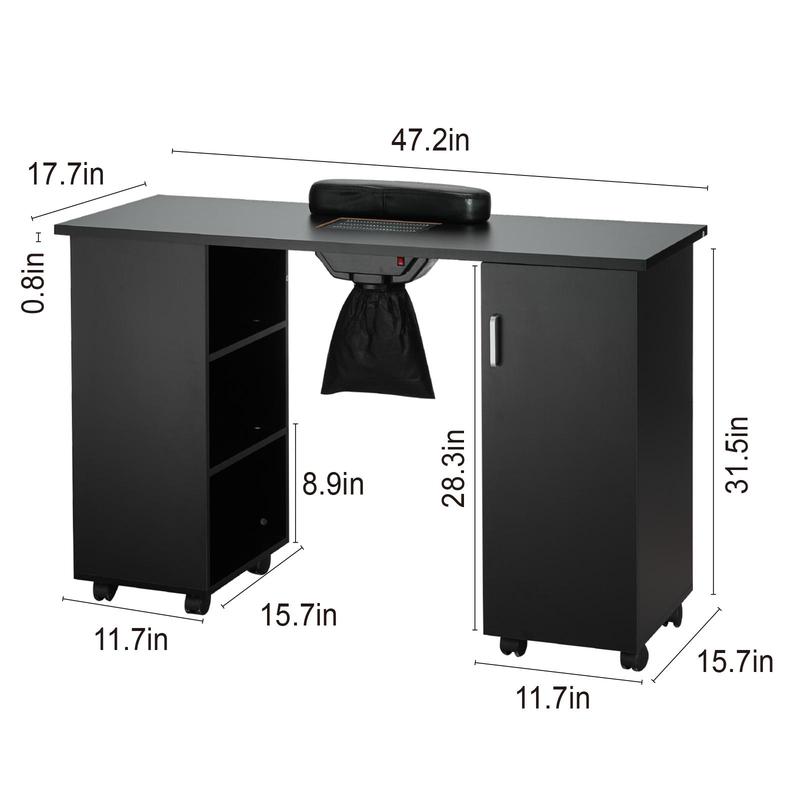 • Versatile & Fashionable: Beyond a manicure table, our moveable manicure nail art station serves multiple purposes—it doubles as a makeup table in salons and bedrooms or as a computer desk in the living room. Whether for commercial or home use, it's the perfect choice for versatility and functionality.
