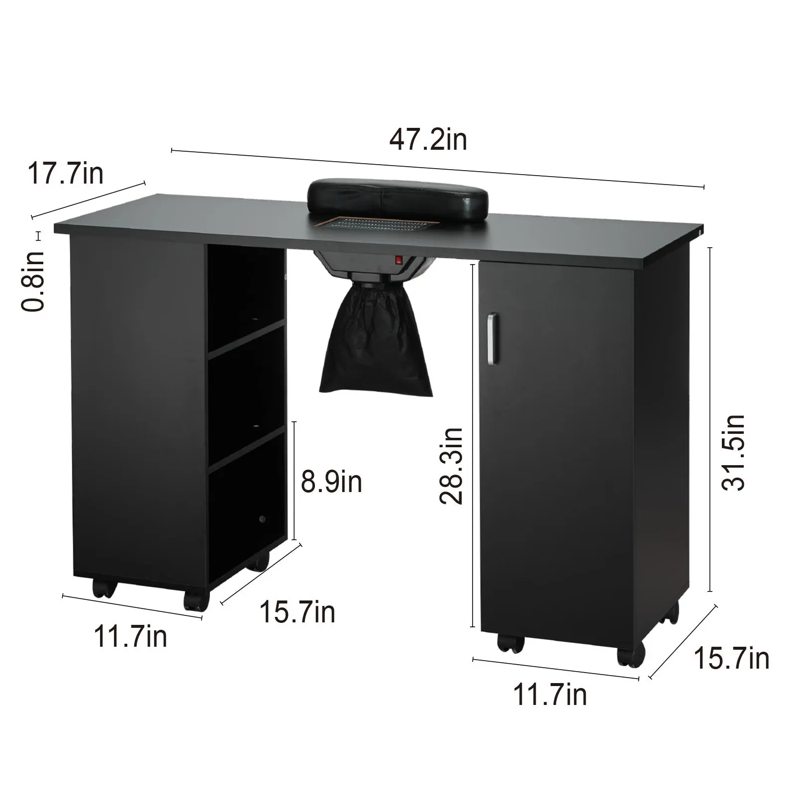 VEVOR Manicure Table,  Nail Table Station with Electric Dust Collector, Moveable Nail Tech Desk with 8 Wheels (4 Lockable), 3 Dust Bag & Wrist Rest, MDF Nail Art Workstation for Spa Beauty Salon, Black