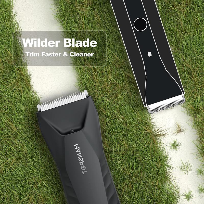 MANSPOT Manscape Body & Pubic Hair Trimmer for Men Electric Groin Hair Trimmer with Replaceable Ceramic Blade Heads Waterproof for Wet Dry Use Standing Recharge Dock 90 Minutes Shaving Time