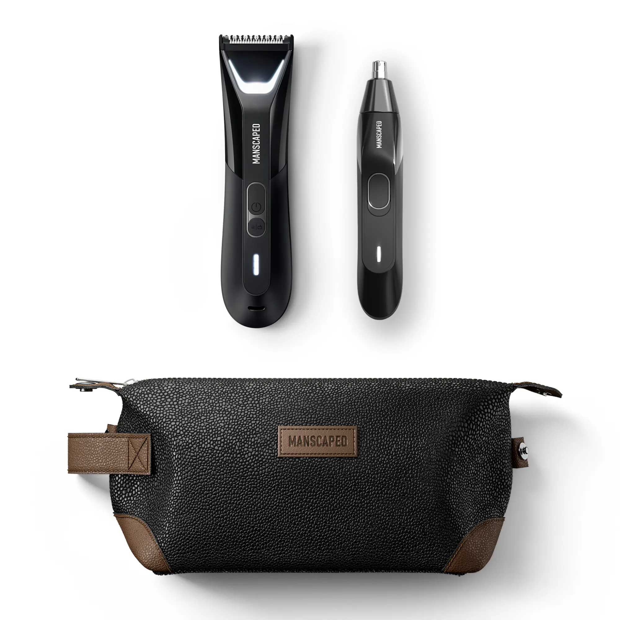 MANSCAPED® The Perfect Duo 5.0 combines the two most essential grooming products from the leading male grooming company. Featuring The Lawn Mower® 5.0 Ultra electric groin & body hair trimmer and The Weed Whacker® 2.0 nose & ear hair trimmer. Also includes The Shed toiletry bag to hold all of your MANSCAPED® products.