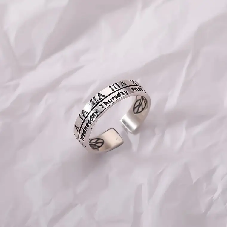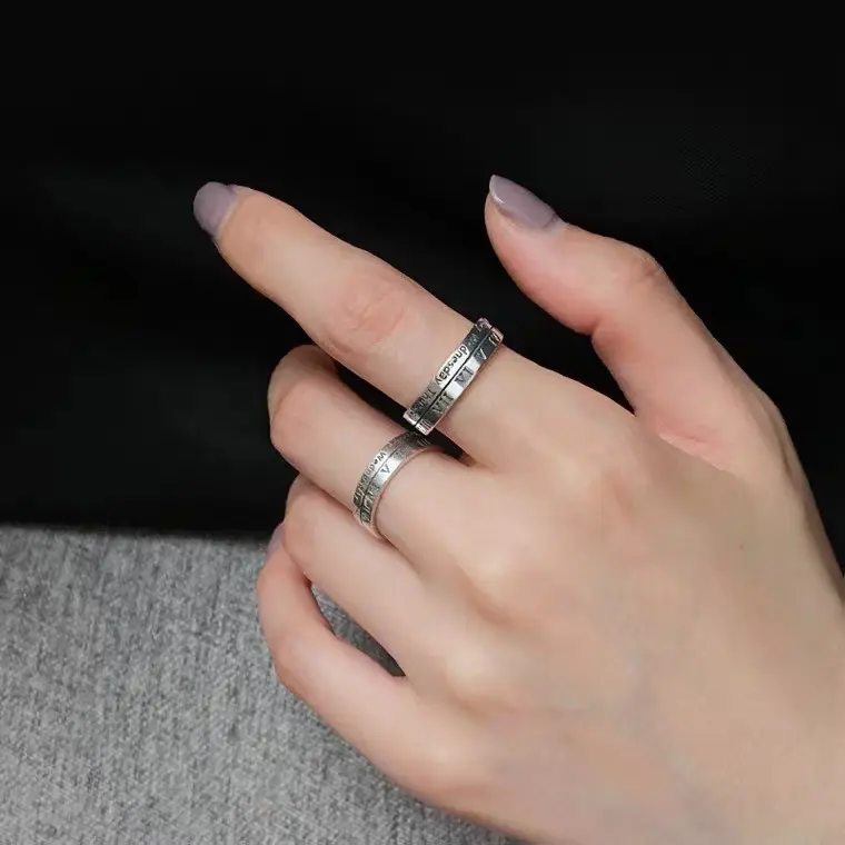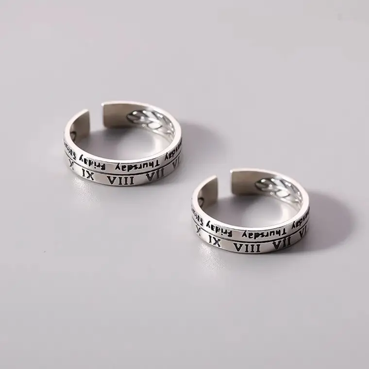 5. 2pcs-Internet celebrity ins cold wind retro Roman numeral ring niche design men's and women's couple ring ring tail ring
