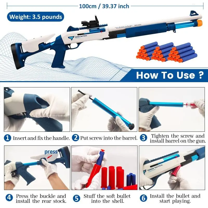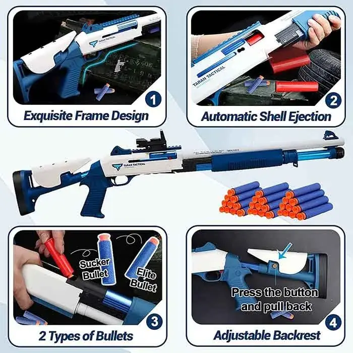🎮 UDL XM1014-Blue White Manual Foam Dart Blaster