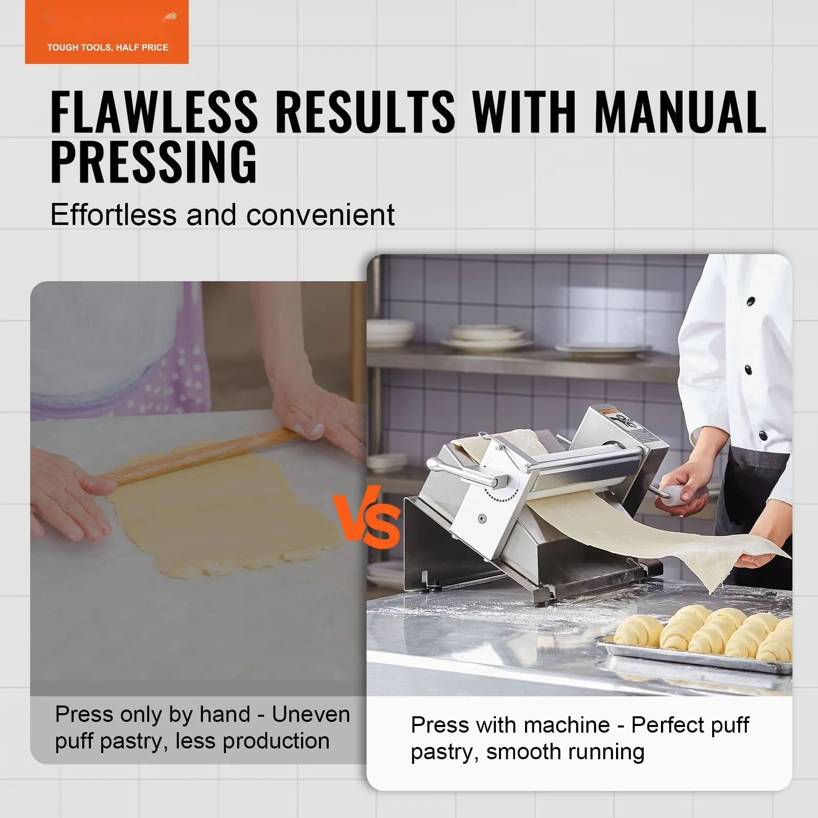 ·Effortless Dough Preparation: Featuring a manual drive mode, this dough sheeter eliminates the need for electricity. Simply feed the dough and turn the handle to achieve smooth and even pastry. You can press the dough repeatedly to match your desired textureâthe more you roll, the chewier the result, replicating the authentic handmade taste.