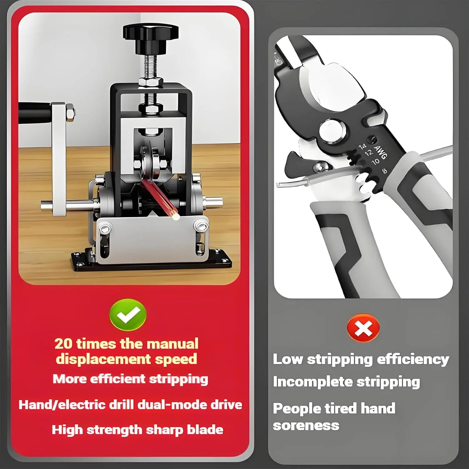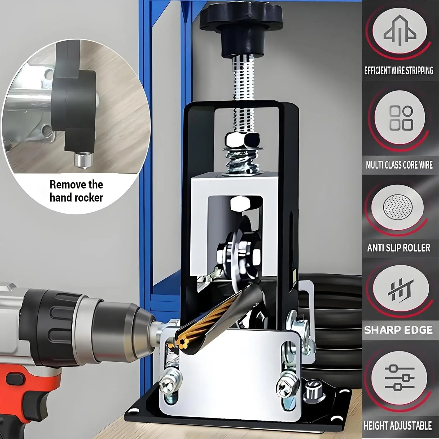 Manual & Electric Drill Operable Wire Stripping Machine, Quick-change Blade Wire Stripping Machine, Heavy Duty Specialty Hand Tool for Scrap Cable Removal, Cutting Hardware