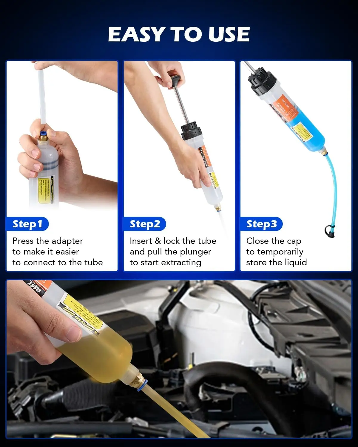 Ready for Any Fluid: This auto syringe pump is manufactured from high-quality polyethylene, keeping it highly resistant to heat and chemical corrosion to easily handle any engine fluid