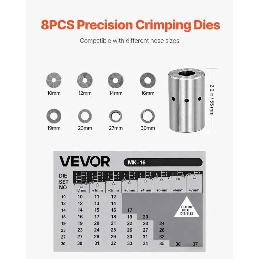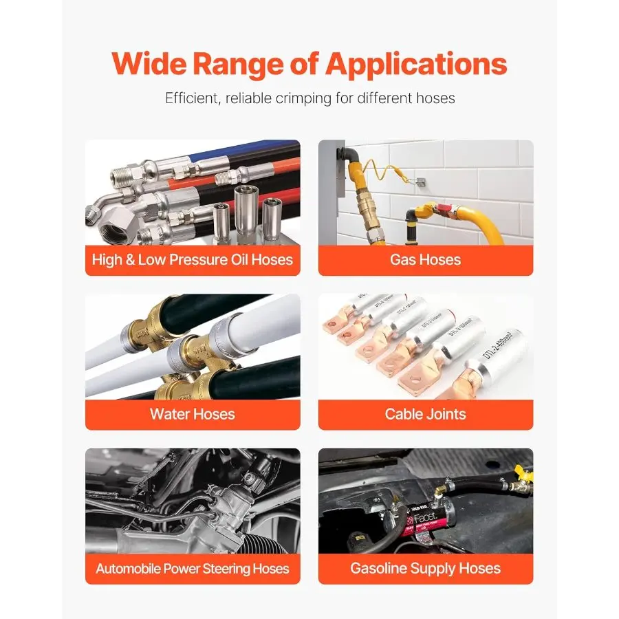 VEVOR High Pressure Hydraulic Hose Crimper, Manual Hose Crimping Tool with 8 Dies 0.24 - 1.1 Crimping Range, Suitable for Low High - Pressure Oil Pipes, Gas/Water/Auto AC Hoses Cable JointsVEVOR High Pressure Hydraulic Hose Crimper, Manual Hose Crimping Tool with 8 Dies 0.24 - 1.1 Crimping Range, Suitable for Low High - Pressure Oil Pipes, Gas/Water/Auto AC Hoses Cable Joints