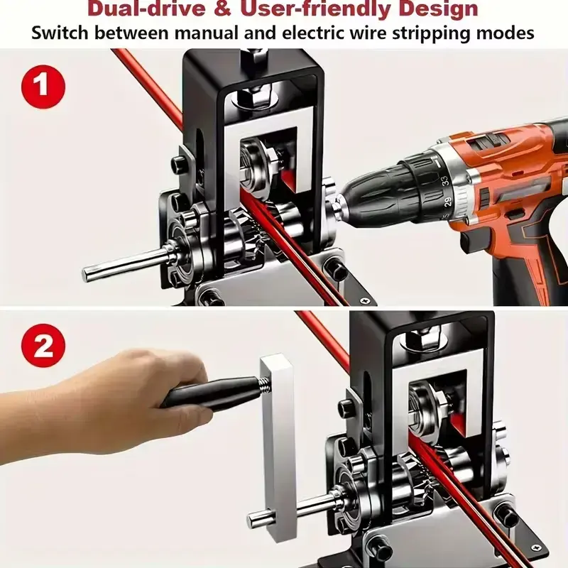 【Efficient Manual Tool】: This manual wire stripping machine allows for quick and effective removal of insulation from cables and wires. 【Circular Cutting Blade】: Features a circular cutting blade that enhances precision when stripping wires, ensuring clean cuts every time. 【User-Friendly Operation】: Operated by a hand-crank mechanism, making it easy to use and manage, even for those new to wire stripping. 【Compact Design】: Its compact size ensures easy storage and portability, making it convenient for both professionals and hobbyists. 【Durable Construction】: Built with durable materials, this tool is designed to withstand frequent use, ensuring long-lasting performance.