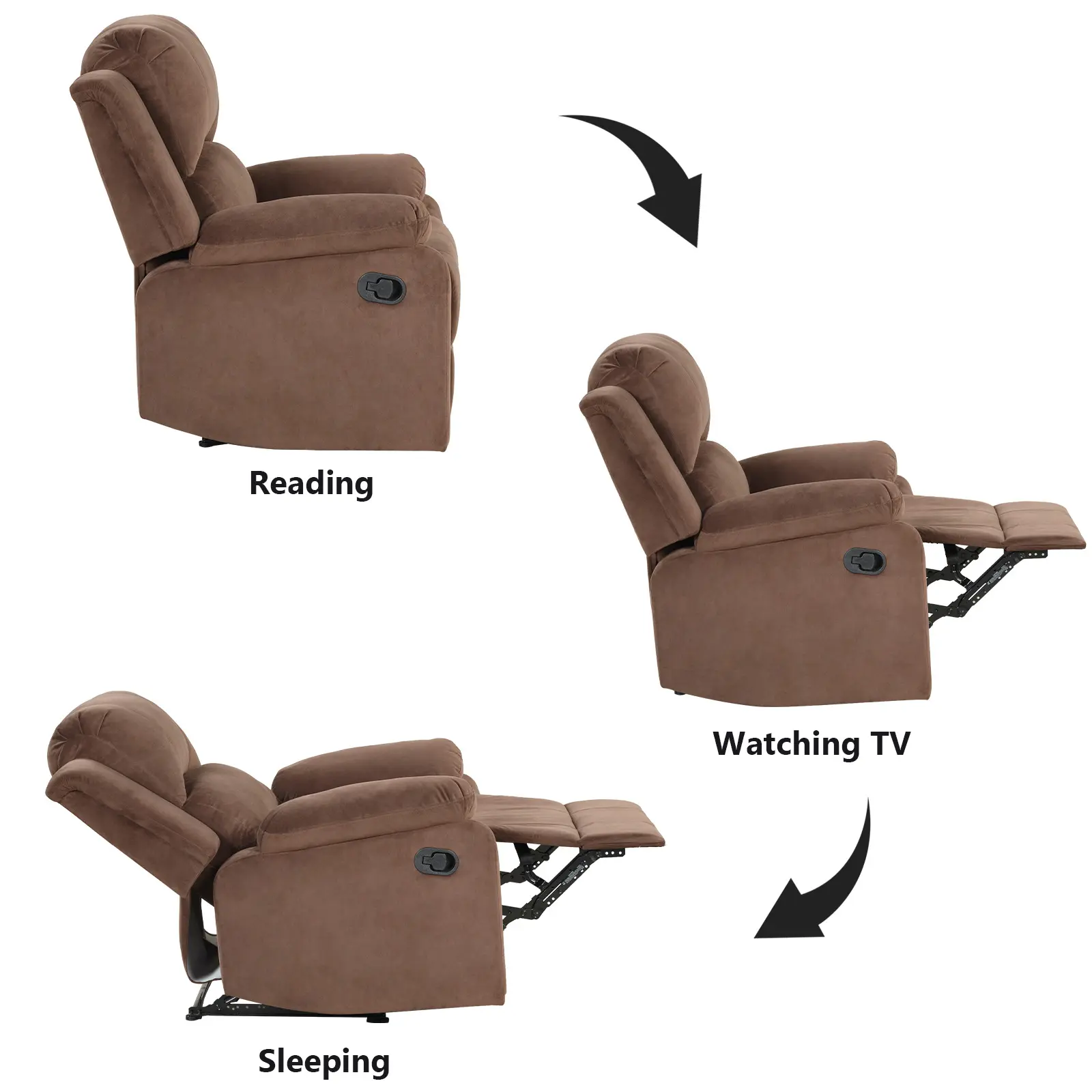·Manual Recliner Chair: Recliner handle is thoughtfully within easy reach. Just pull handle at side you can recline and stretch your body (max 135 degree). You can enjoy your rest time to the fullest.