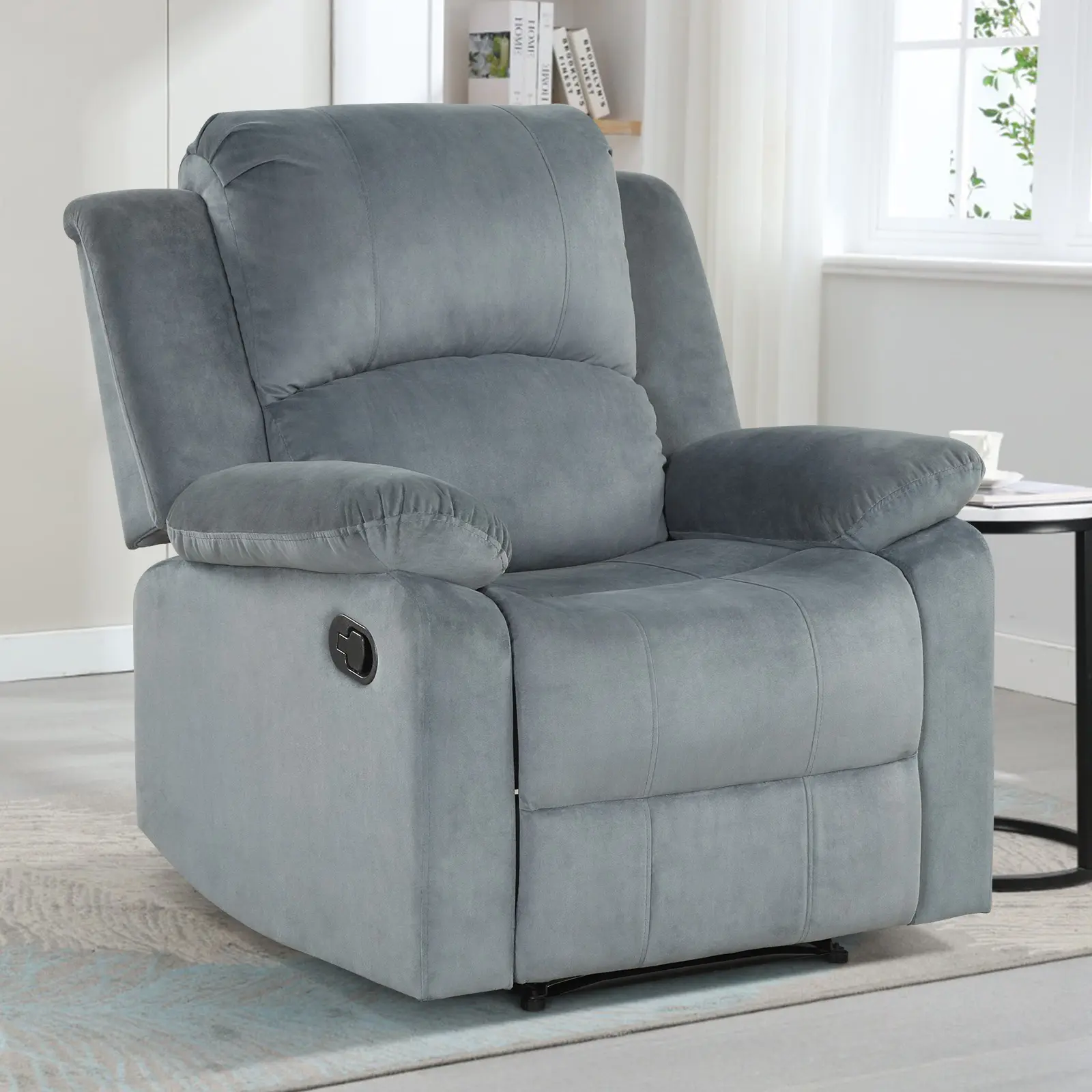 ·Dimensions & Color: The dimension of this manual recliner: 34.76W*35.9D*40H,suitable for most Americans. Relax in this reclining chair for unprecedented comfort. Gray reclining chairs adorn your living room with a modern feel.