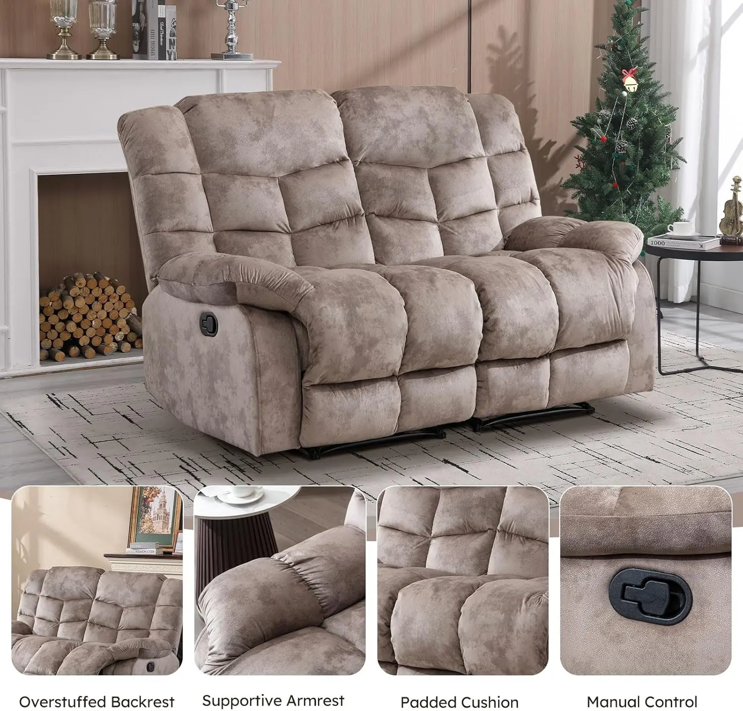 Smooth Manual Reclining Mechanism: Equipped with an easy-to-use manual lever, each seat smoothly reclines to your preferred angle. Whether watching TV or taking a nap, this loveseat effortlessly adjusts to your desired position.