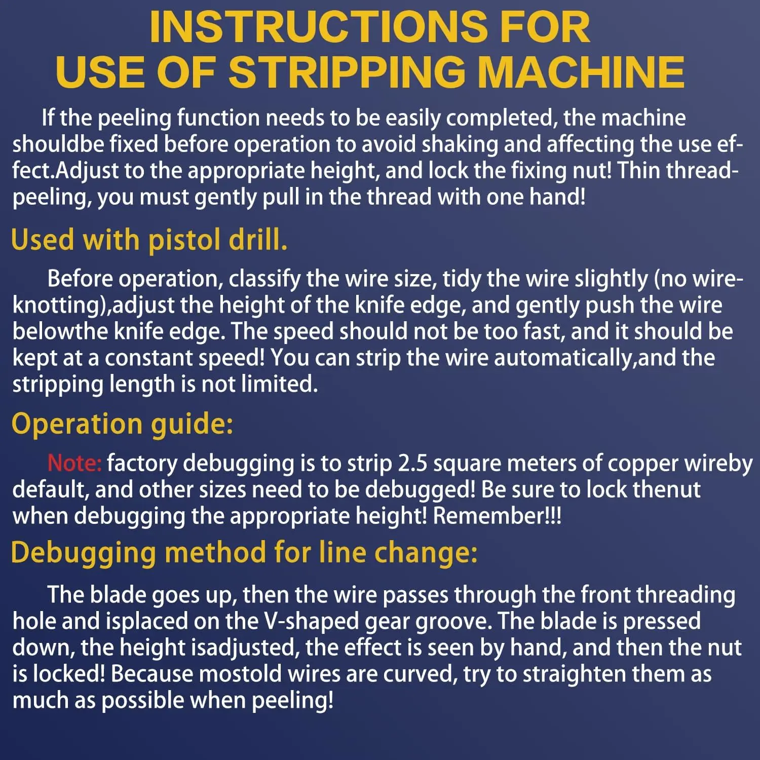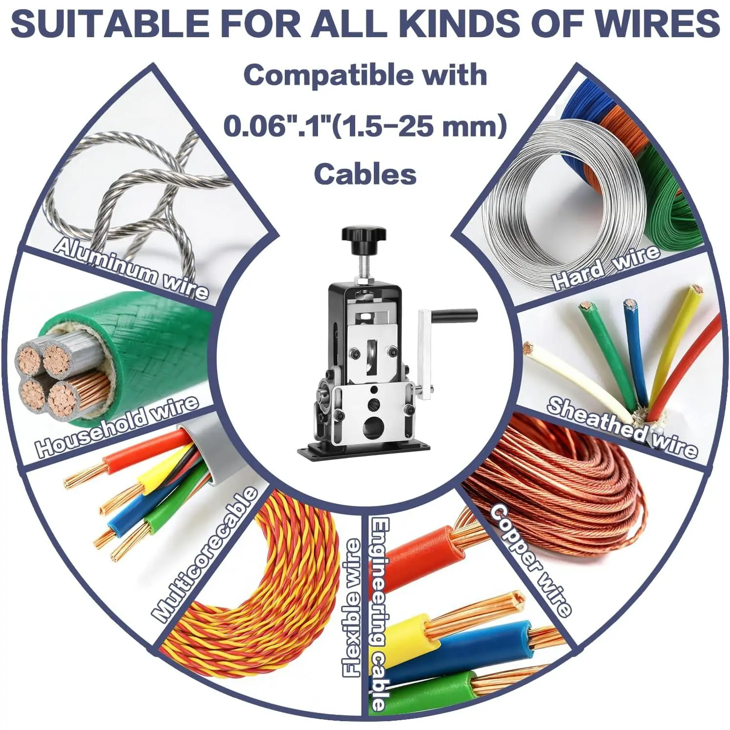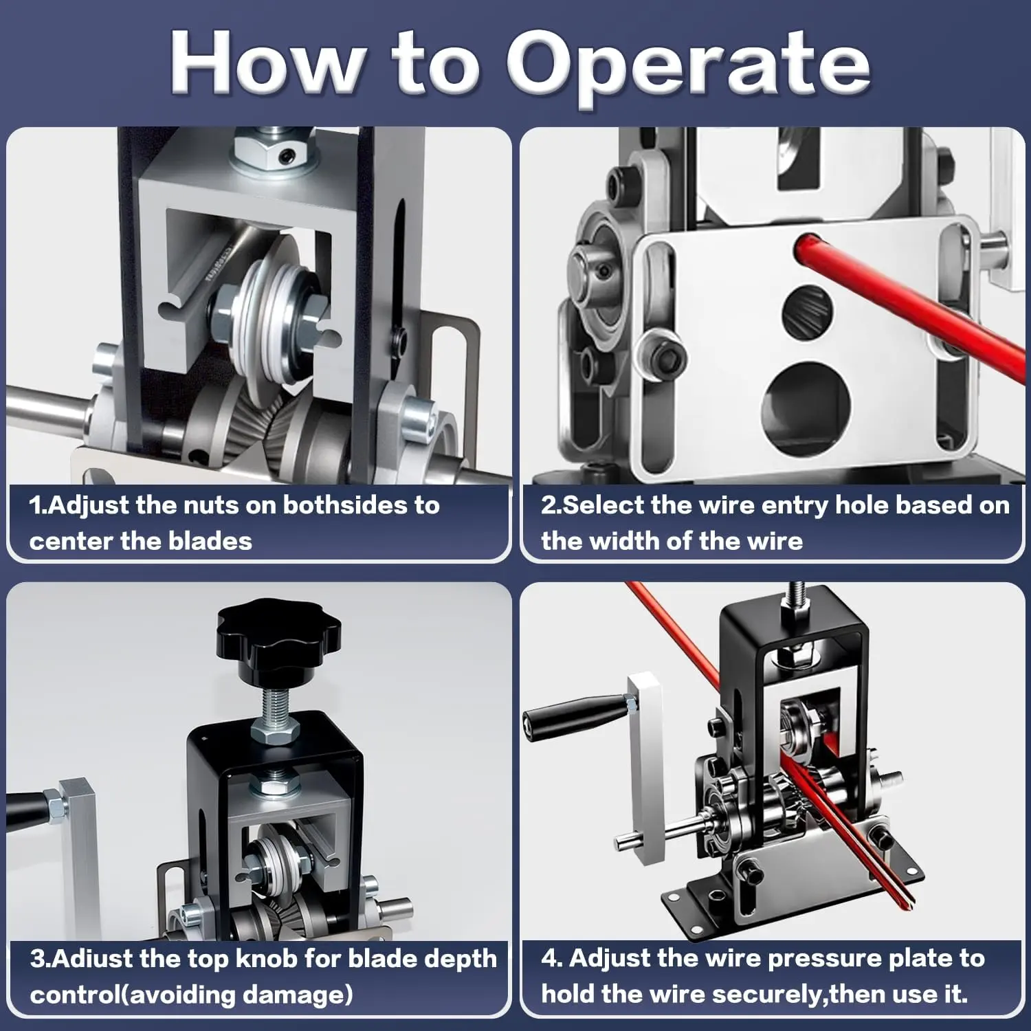 👍[Suitable for Varous Sizes of Wires]: The wire stripping tool includes various sized feeding holes, accommodating wire diameters from 0.06" to 1"(1.5mm to 25mm).Adjust the blade up and down by twisting the regulating nut, making it suitable for di