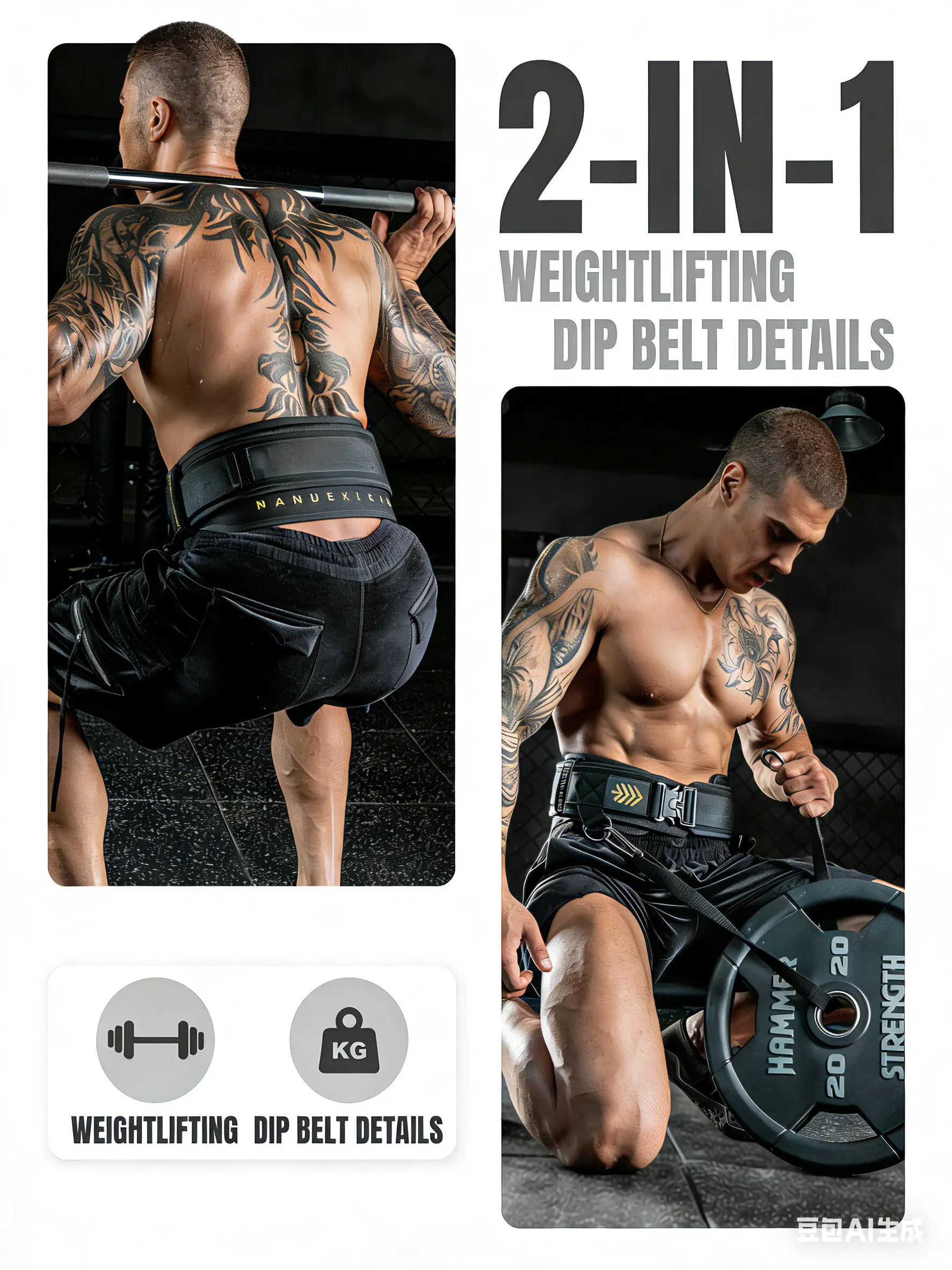 🏋️♂️ MANUEKLEAR 2-in-1 Weightlifting Belt & Dip Belt