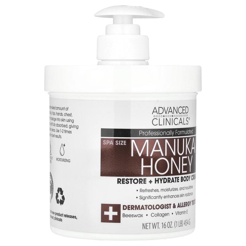Advanced Clinicals Manuka Honey, Restore + Hydrate Body Cream, 16 oz (454 g)