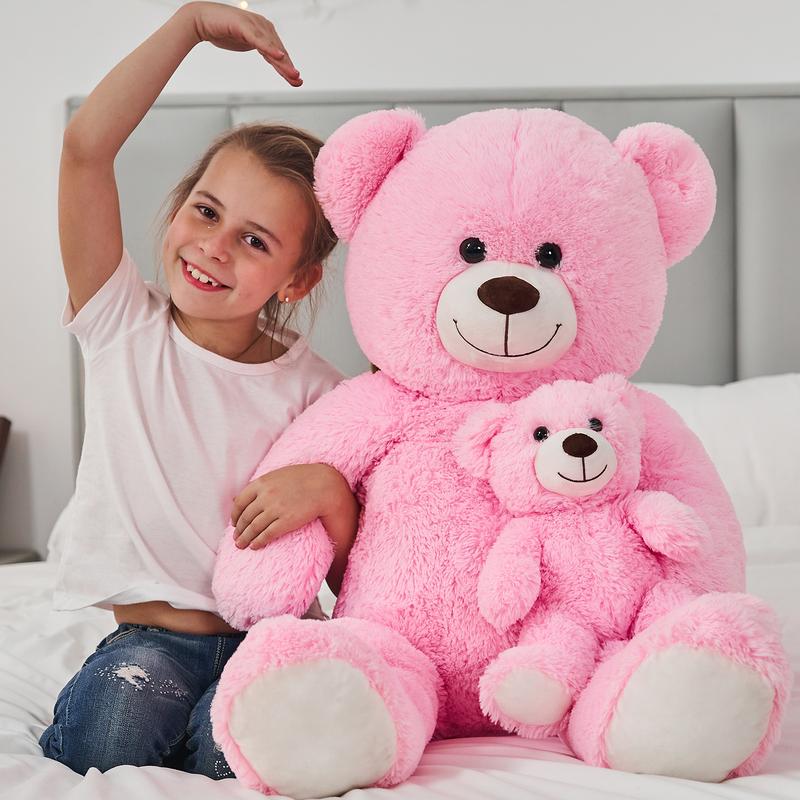 Charming Design: With its sweet expression and carefully crafted features, this large stuffed animal teddy bear has a timeless, classic design that adds a heartwarming touch to any room. Its adorable face and soft fur will melt your heart instantly.It's the ultimate companion for bedtime, movie nights, or just relaxing at home.
