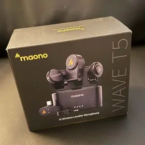 Experience unparalleled sound with the Maono T5 tiny wireless lapel microphone. With a 9g weight and cutting-edge technology, it boasts a 120dB max SPL, 80dB SNR, and 48kHz/24-bit resolution, offering industry-leading broadcast sound quality and adjustable noise cancellation, Enjoy up to 30 hours of use with stable 300 Mbps interference-free transmission, making it Ideal for YouTube, Facebook, TikTok, Video Vlogging, Streaming, Recording, Interviewing, and Content Creating.
