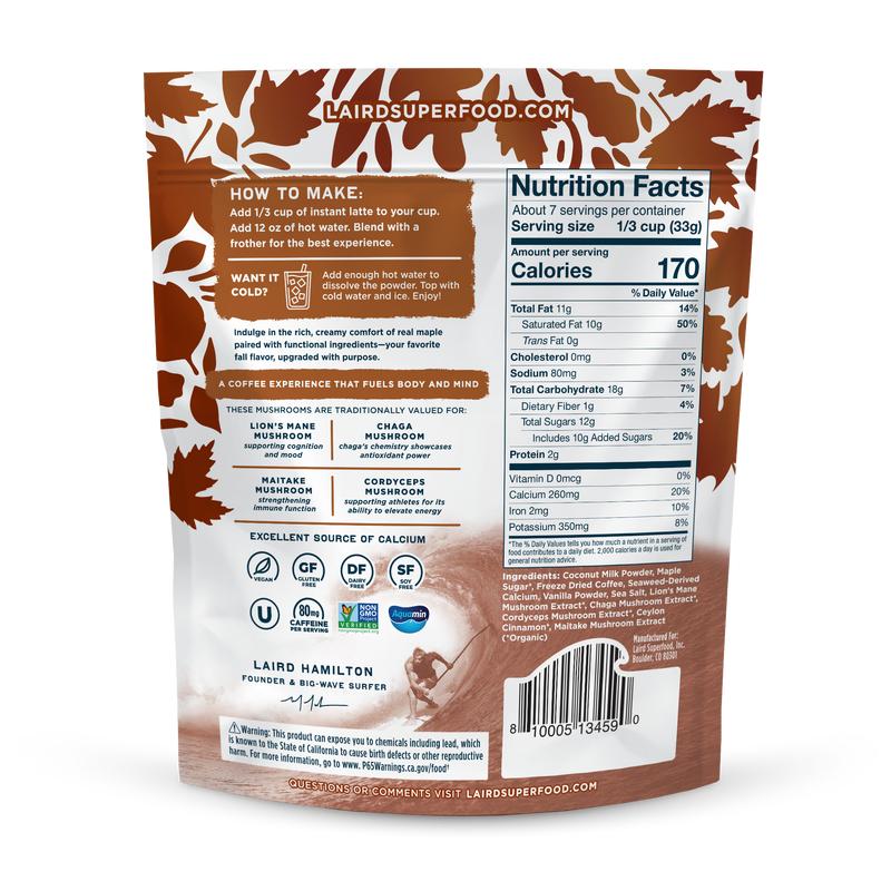 5. Laird Superfood Maple Instant Latte - Creamy Barista-Style Latte with Freeze-Dried Coffee & Coconut Milk Powder - Vegan & Gluten-Free