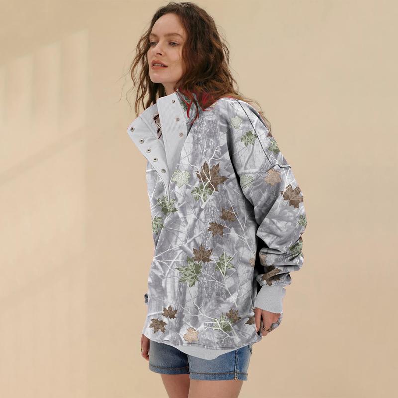 ·Print: Features an all-over maple leaf print, adding a trendy autumn-inspired touch to your outfit.