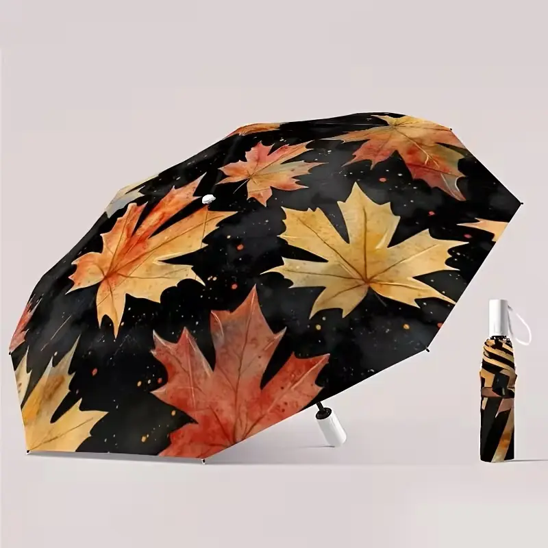 Maple Leaf Design Automatic Folding Umbrella - 8 reinforced frames for windproof stability, portable travel umbrella - essential for commuting, business, and vacations - the perfect gift for both men and women, heavy-duty windproof umbrella.