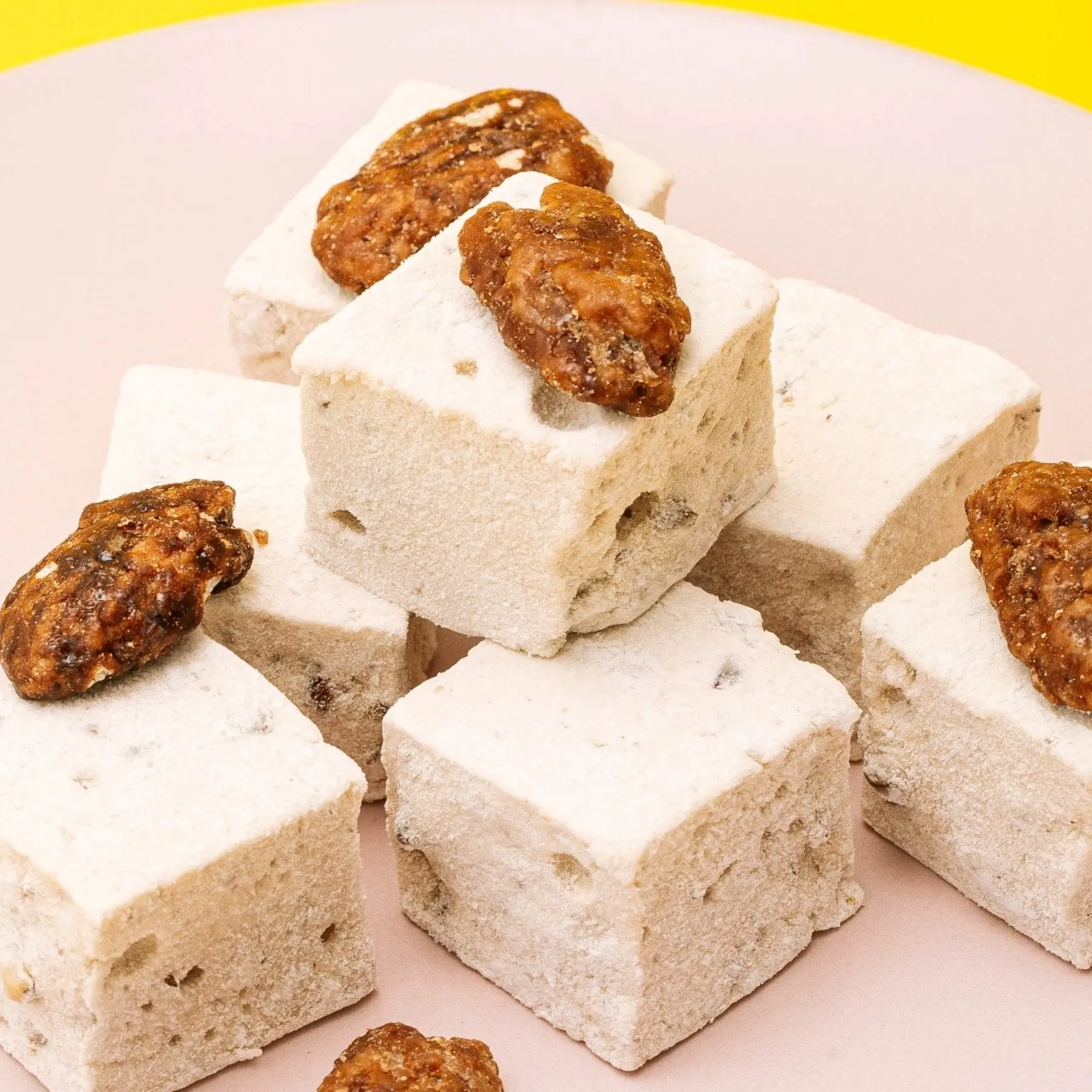 Ah, fall is here! And nothing says fall like the delicious taste of pecan pie and everything maple! We've combined the two to create a fall perfection taste of maple pecan! With chopped pecans folded right into the marshmallow, this sweet treat has the perfect amount of crunch. Add on top of your cocoa with a dash of maple syrup and get ready to get cozy!