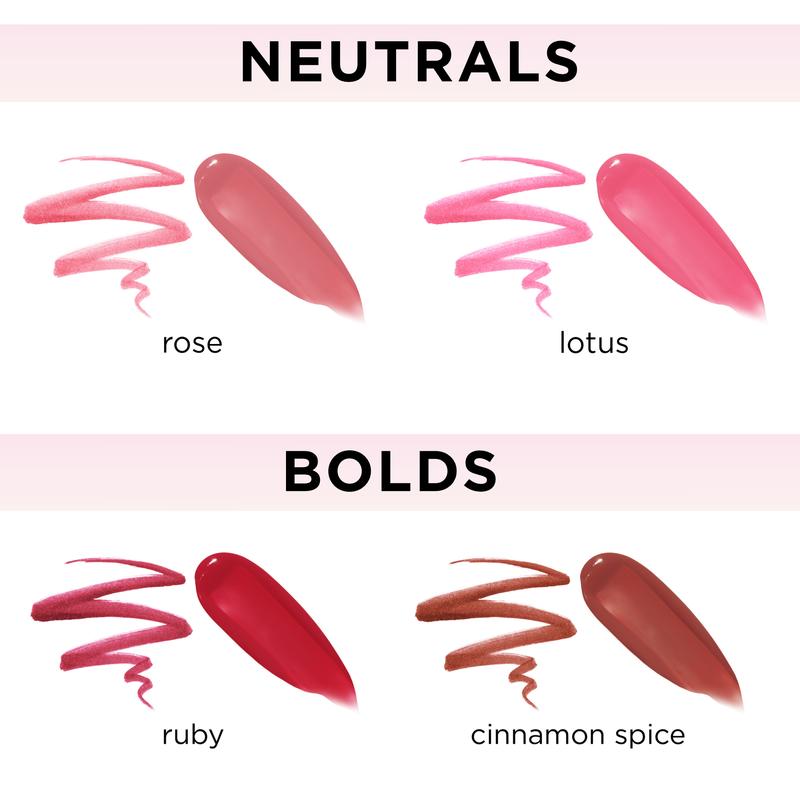 ·3-in-1 Lip Stain: Ink your lips with precision felt-tip stains to line or fill for all-over color.