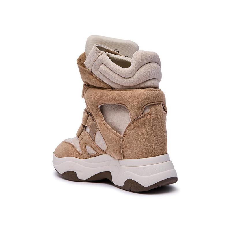The Maranto Taupe Wedge Sneaker features a faux leather and faux suede mixed-material upper, a high top shaft, a color block design, and an almond toe silhouette. Complete with a concealed inner wedge heel, velcro strap detailing, a padded tongue, a padded collar, and a textured rubber outsole. Style with cozy coordinating sets for an elevated casual look.- Mixed-Material Upper: Faux Leather, Faux Suede- Almond Toe- Rubber Outsole- Imported(all measurements approximate from size 7.5)- 4” Shaft Height- 4” Hidden Wedge HeelProduct ID: 1040378