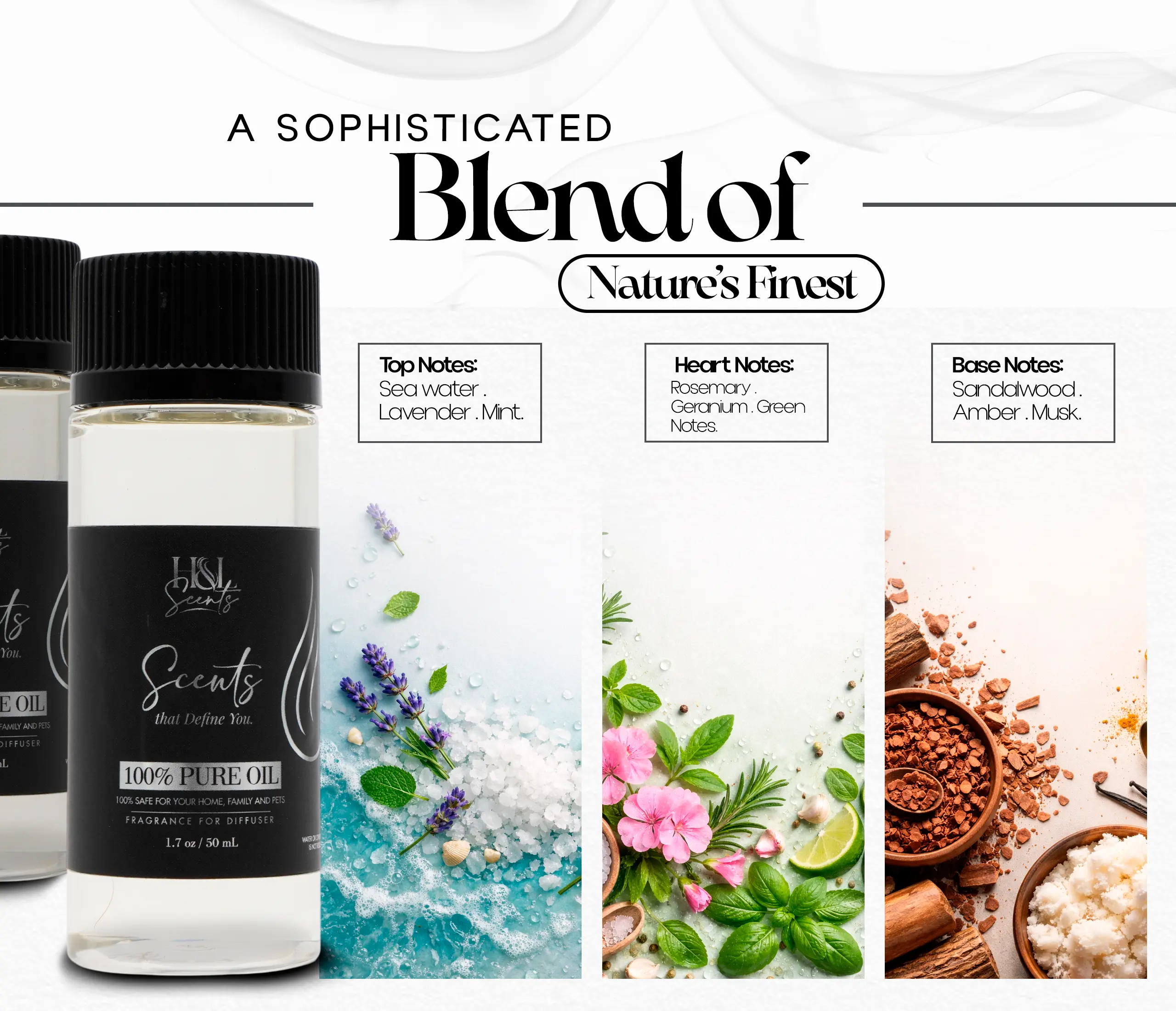 The heart notes bring a fresh, earthy feel, complementing the top notes beautifully. Experience the harmonious blend of these aromatic elements.