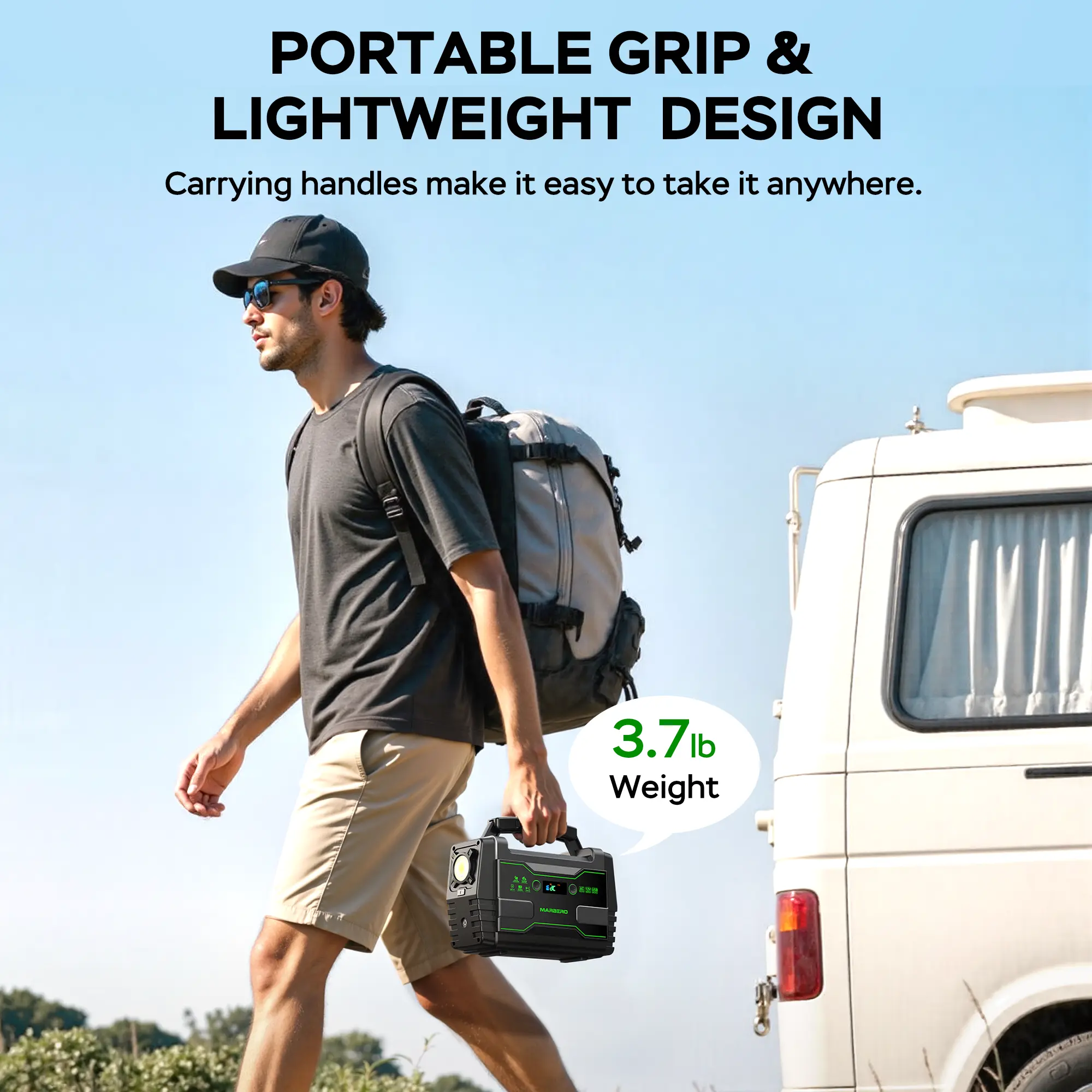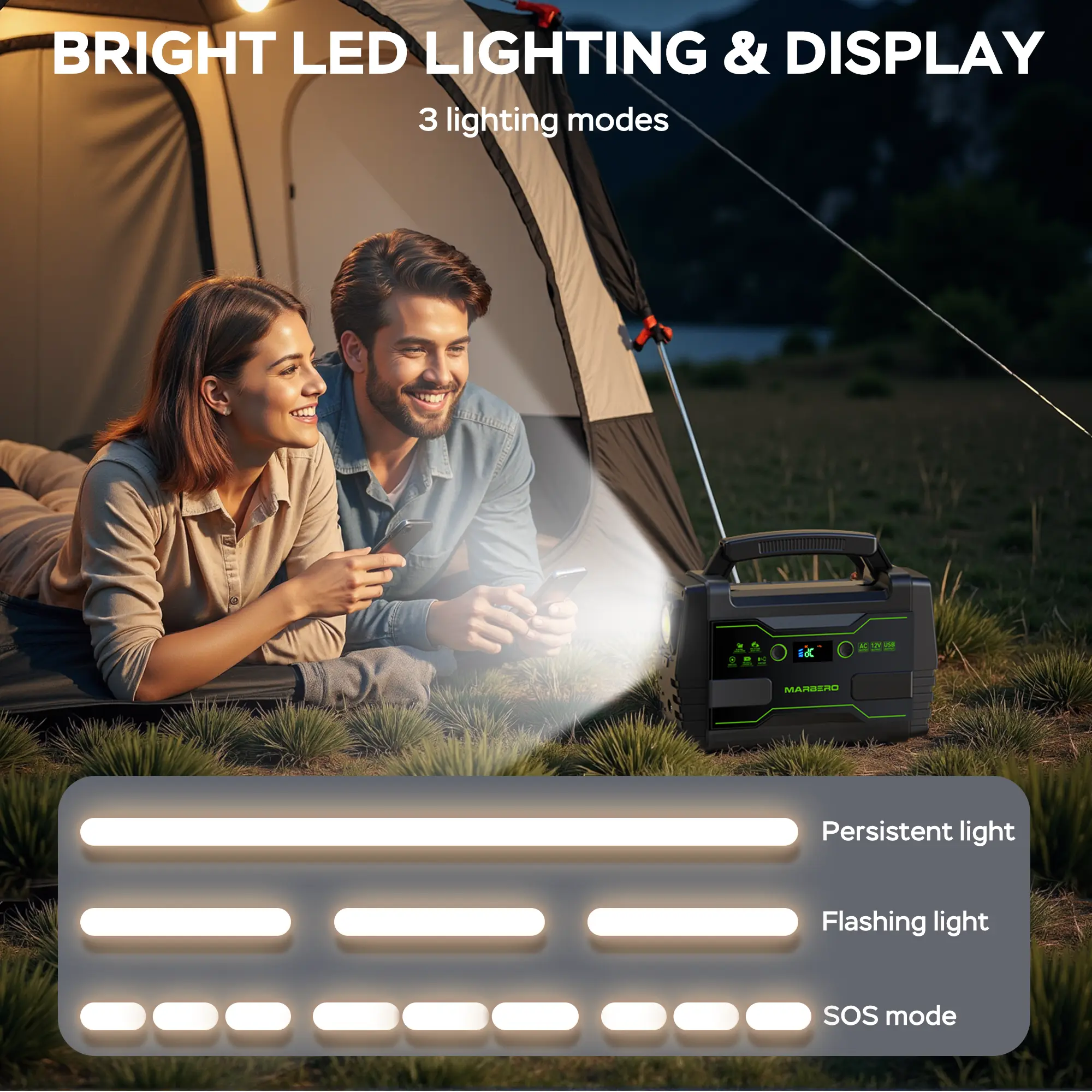 MARBERO 155Wh Portable Power Station with 2 x 100W AC Outlets(150W Surge) 7 Output Ports Built-in Flashlight for Camping Power Outage Outdoor Emergency #portablepowerstation #campinggear #offgridpower #marbero #backuppower