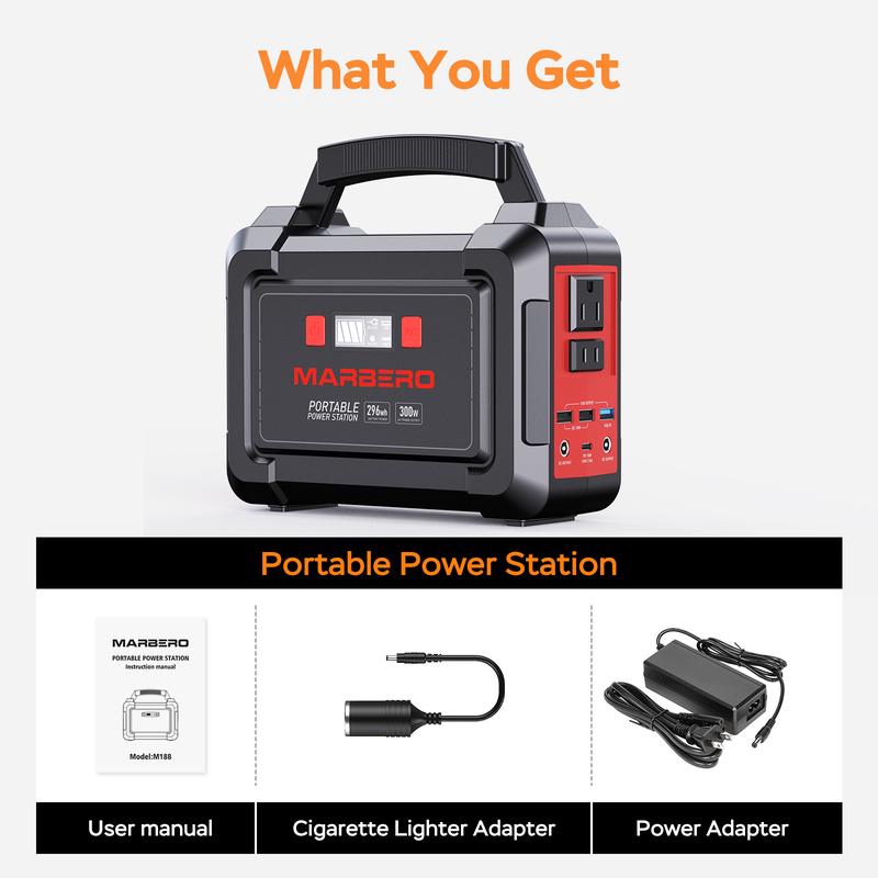 🌟 MARBERO 296Wh 300W Portable Power Station M188 🌟
