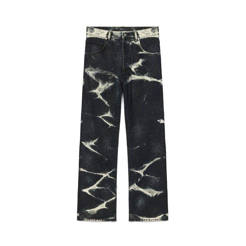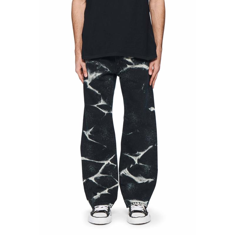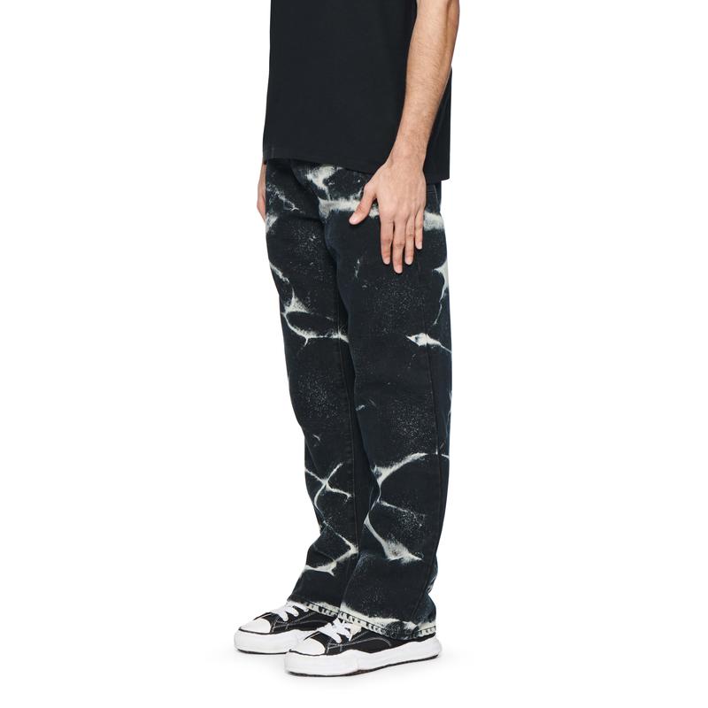 This mid-rise baggy leg is crafted from premium coated black stretch denim with a marbleized finish.
