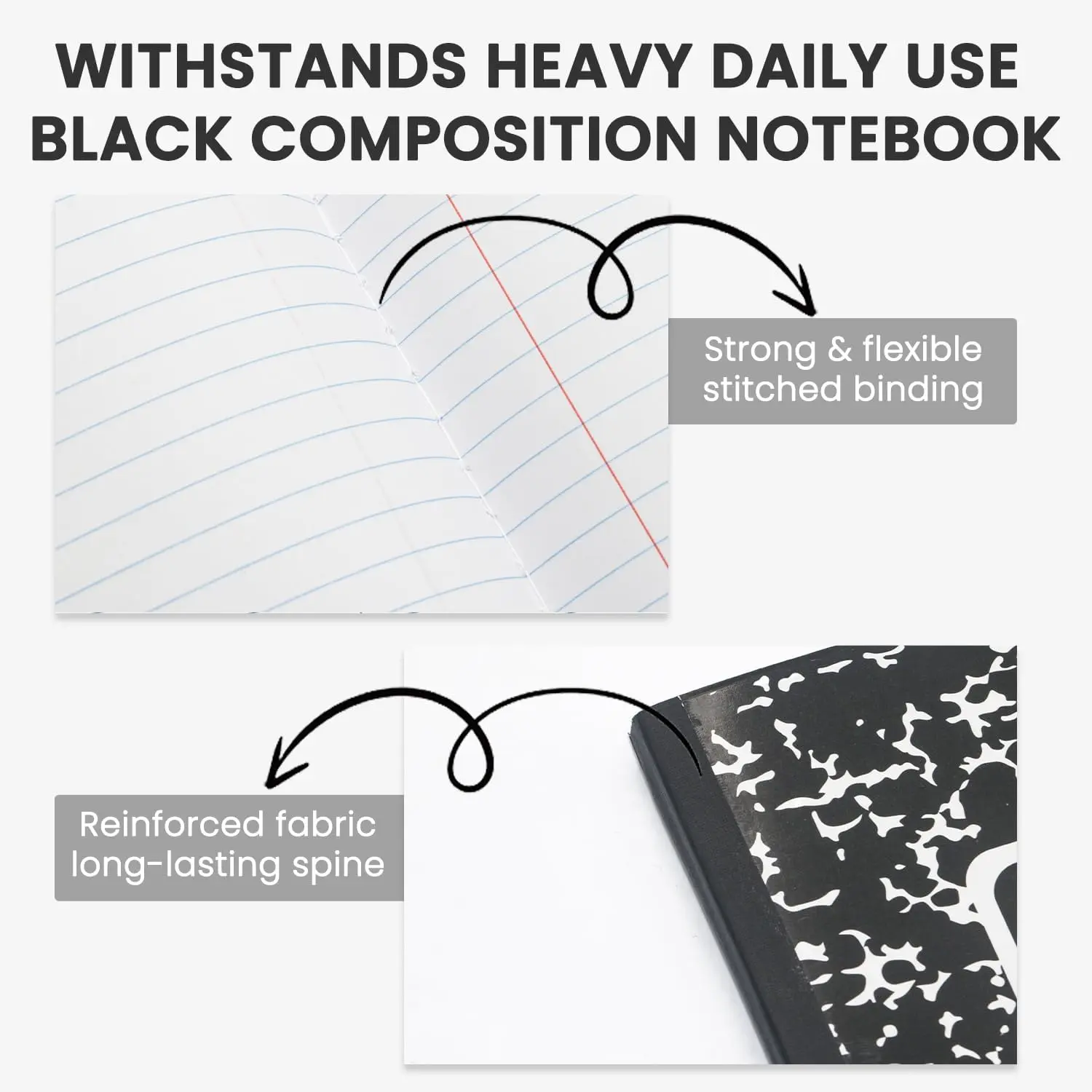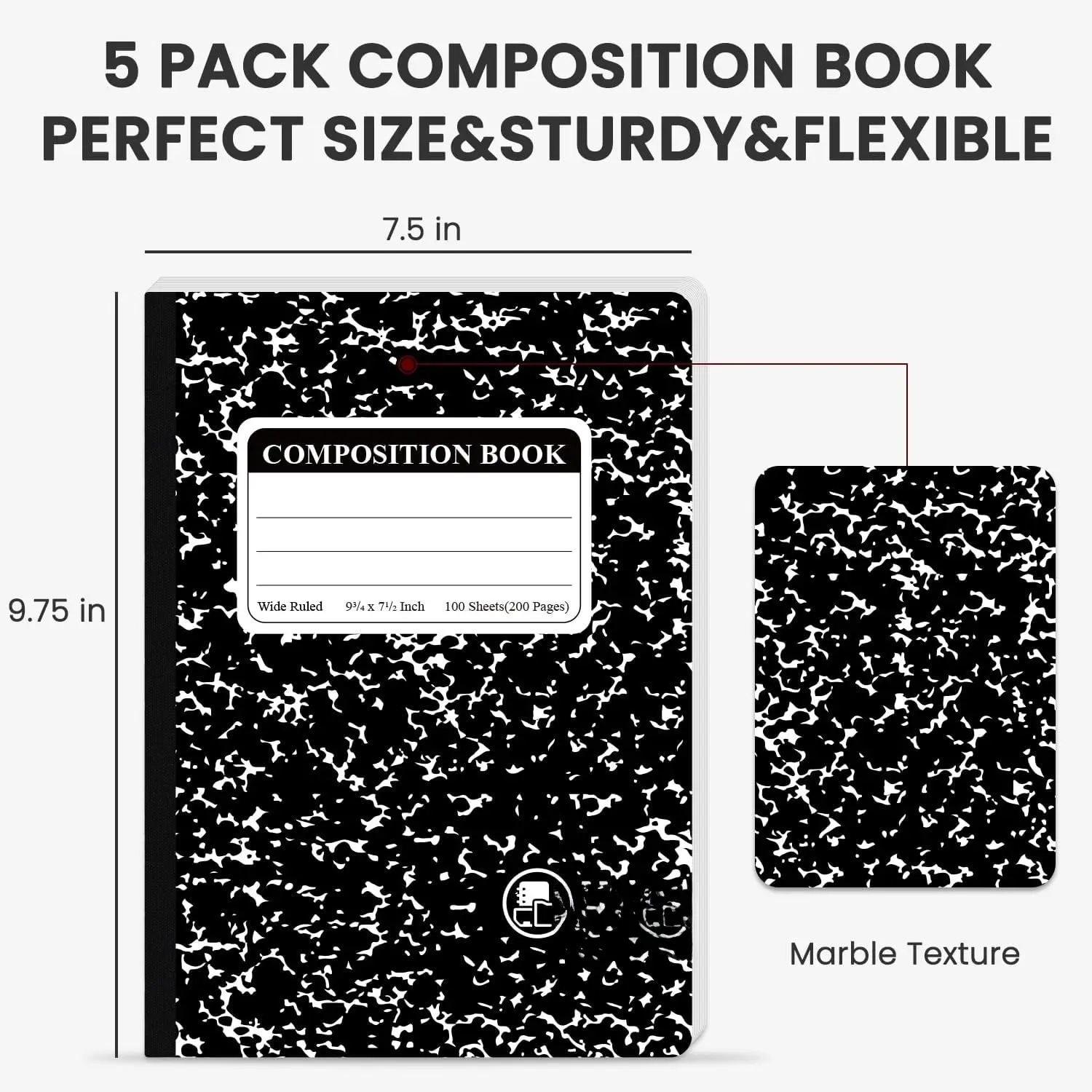 Hardcover Durability Meets Style:The black composition notebook is built to last, resisting from daily handling. Our hardcover composition notebooks offer a , smooth surface that holds up all year. The marble notebook cover adds timeless appeal. Students and teachers prefer marble notebooks wide ruled for both style and structure. Each marble composition notebook wide ruled version combines utility and tradition.