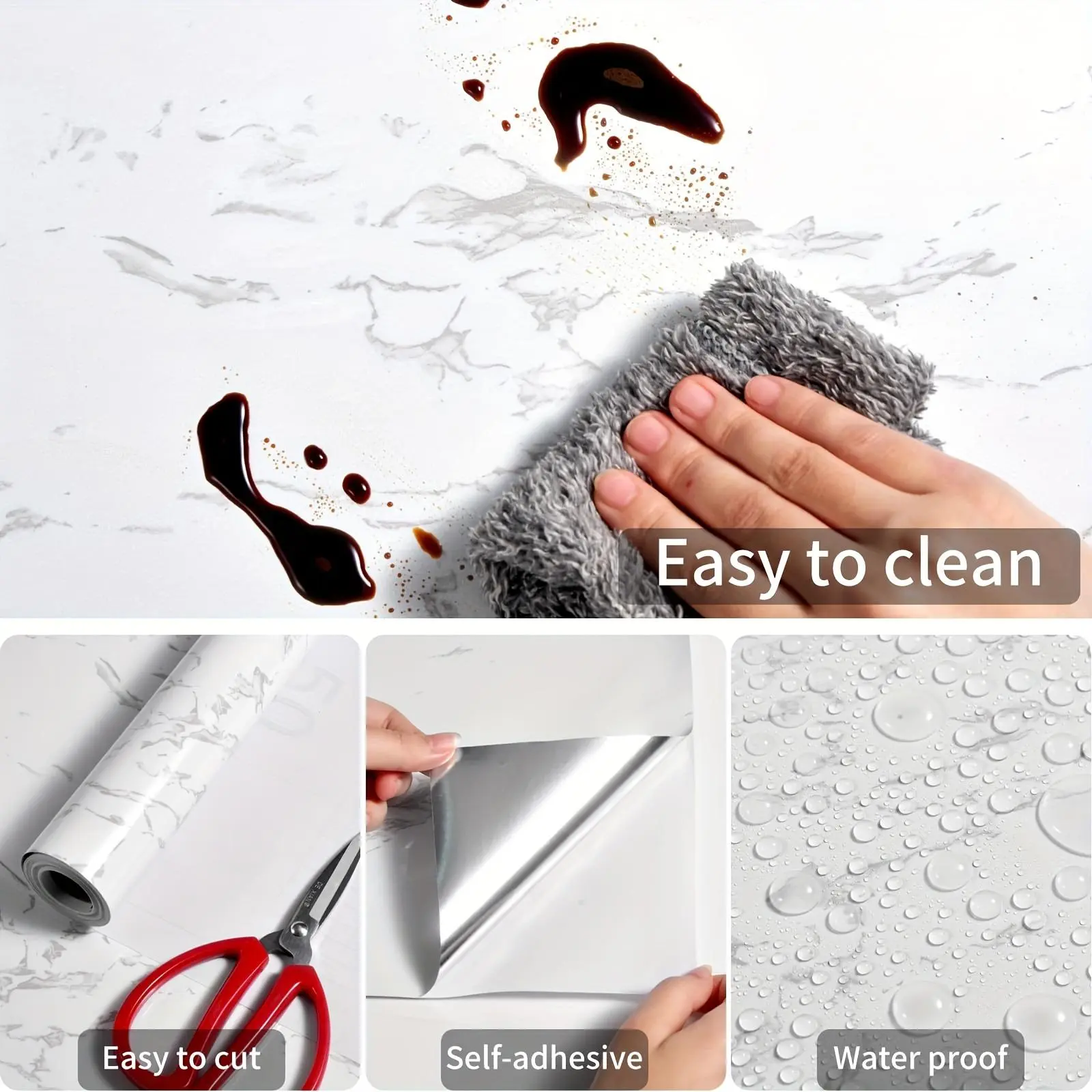·Material: PVC ; Marble Grain, Granite grain, Stone Textured ; Feature: Glossy, Self-adhesive, tear off the protective paper on the back and paste directly. Very convenient. Free DIY, installation, casual collage, arbitrarily cut, wear-resistant,etc