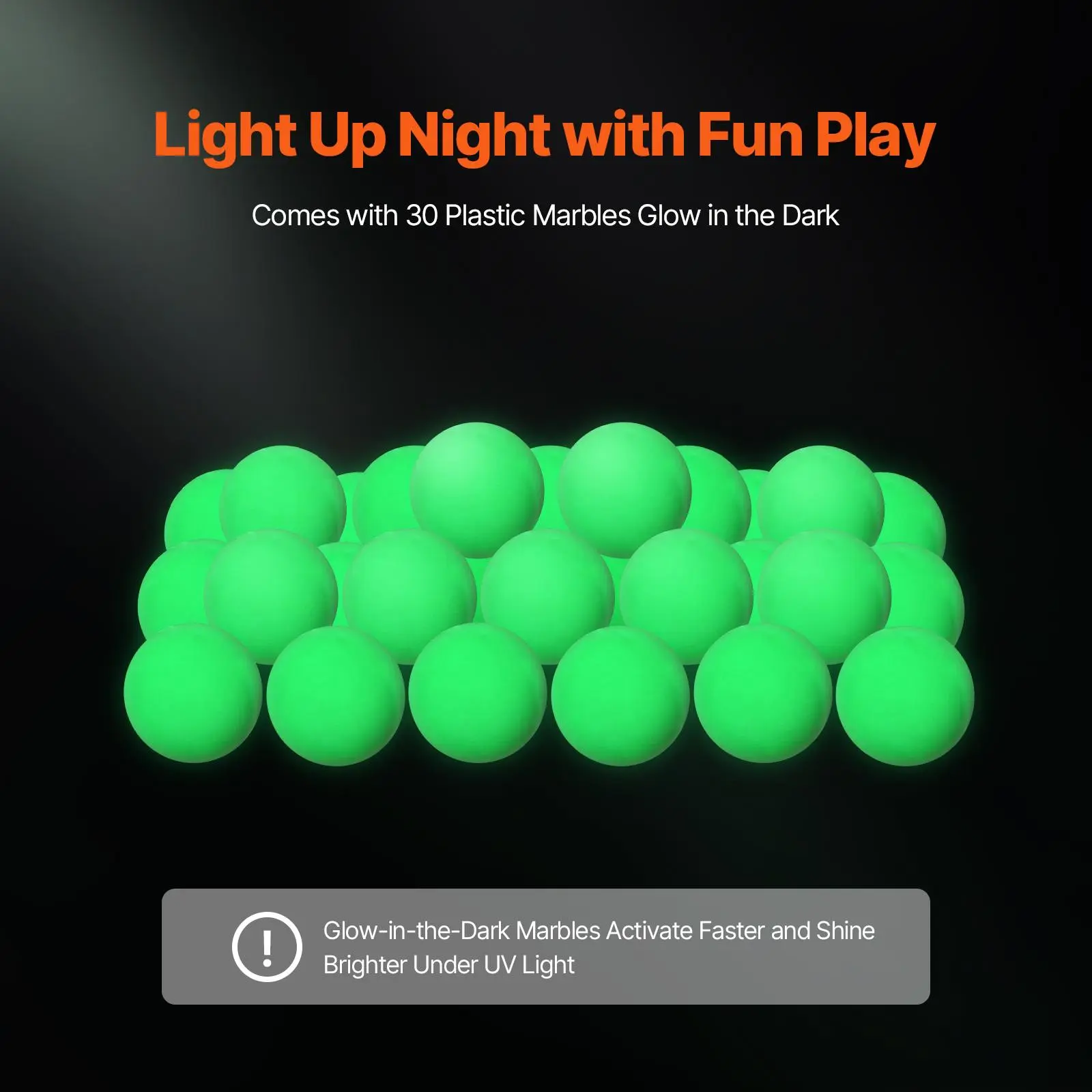 • Accessories Included: The motorized marble run includes 170 plastic blocks, 15 glass marbles, 30 glow-in-the-dark plastic marbles, and 15 plastic marbles—just snap everything together and let the fun begin!