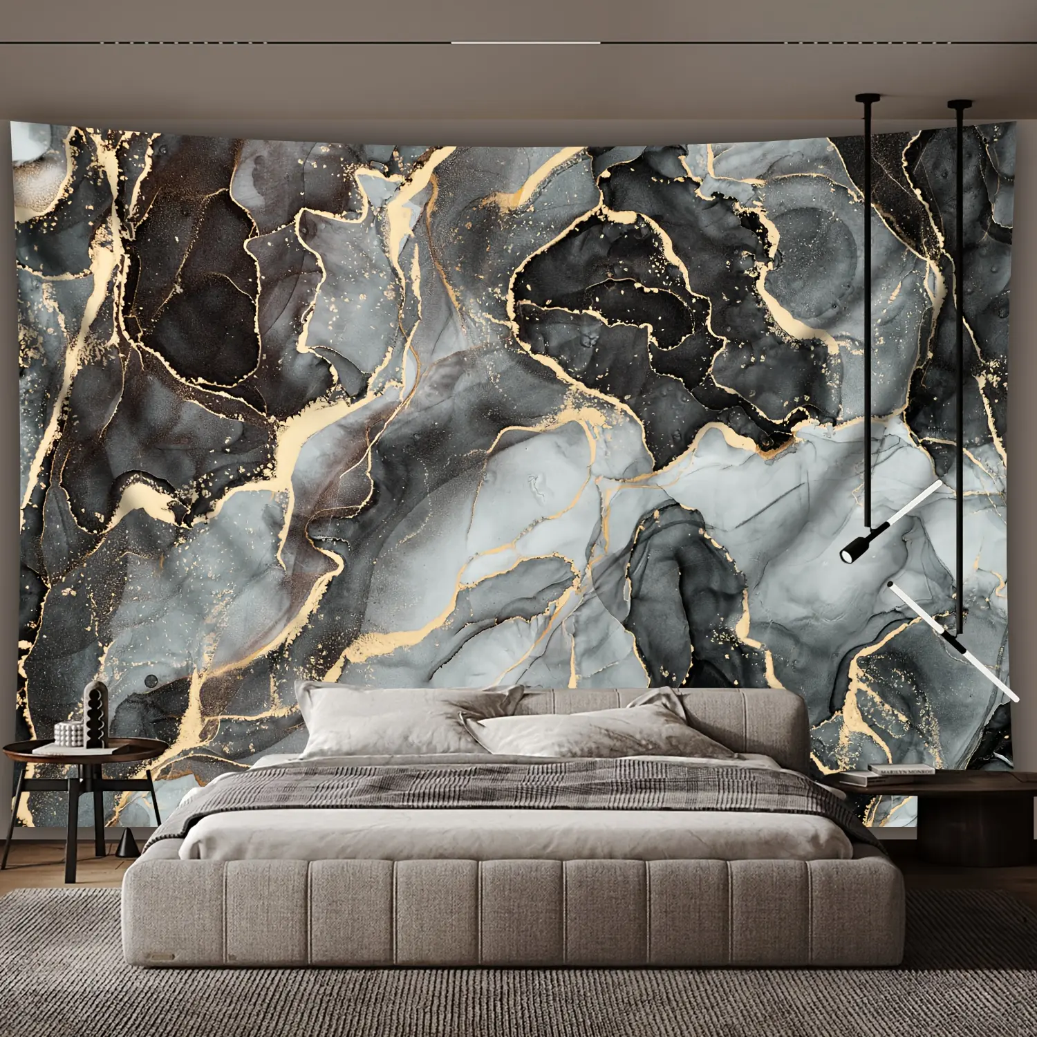 [Marble Texture Polyester Tapestry] 1pc Extra Large Polyester Marble Texture Tapestry - Indoor Landscape Theme Decor Wall Hanging for Living Room Bedroom Office - No Electricity or Battery Needed with Free Hanging Clips