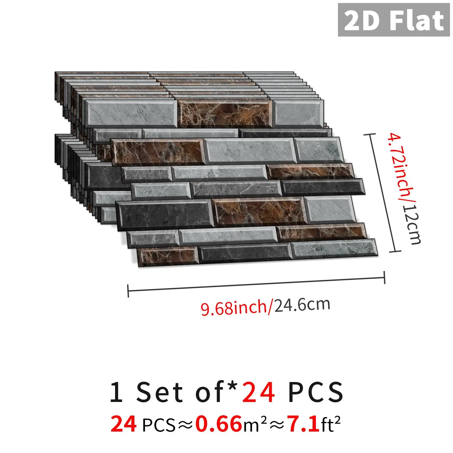 24pcs Marble Tile Stickers, Brick Shaped Patterns, Self-Adhesive Waterproof, Strong Adhesion, Ideal Choice For Rooms, Living Rooms, Kitchens, Corridors