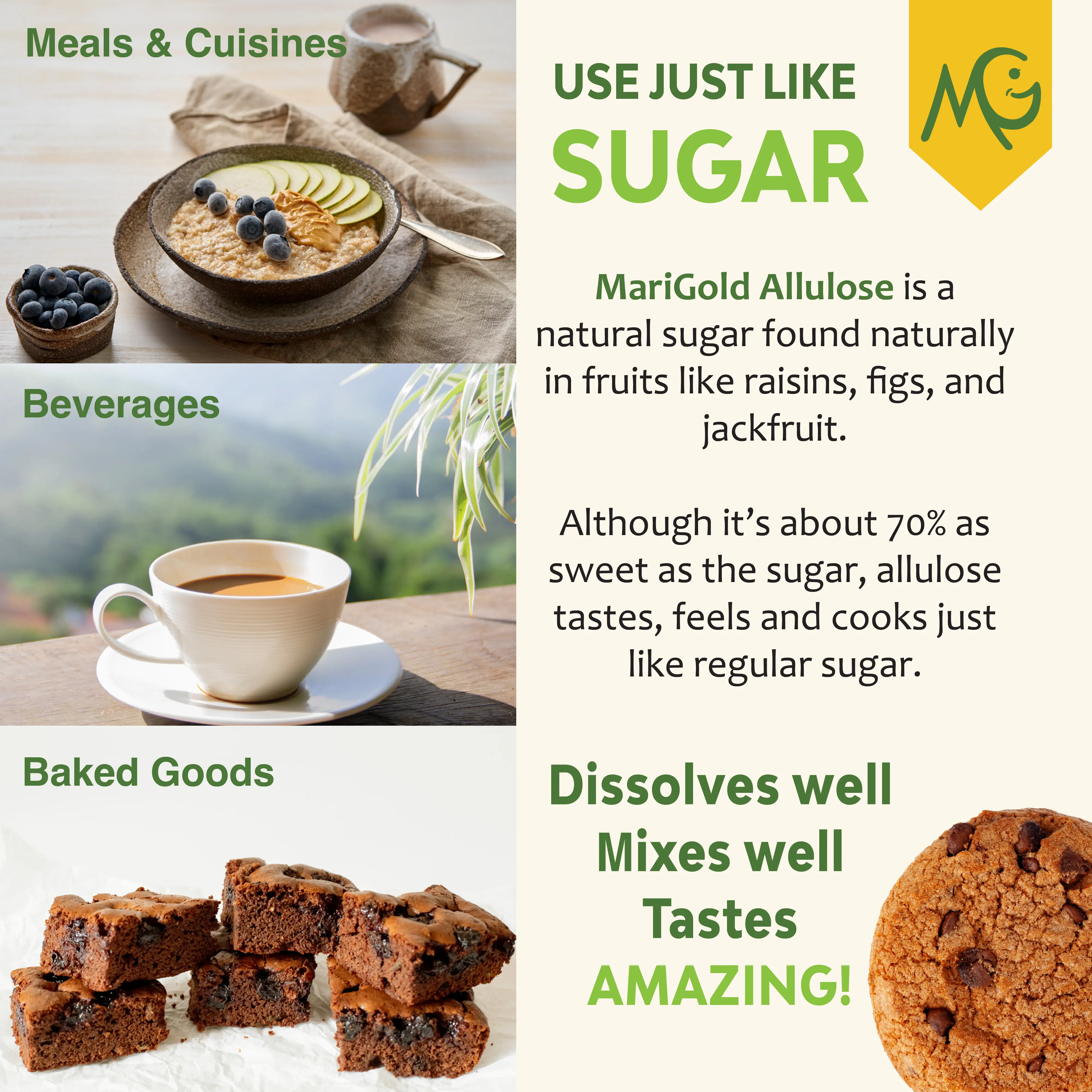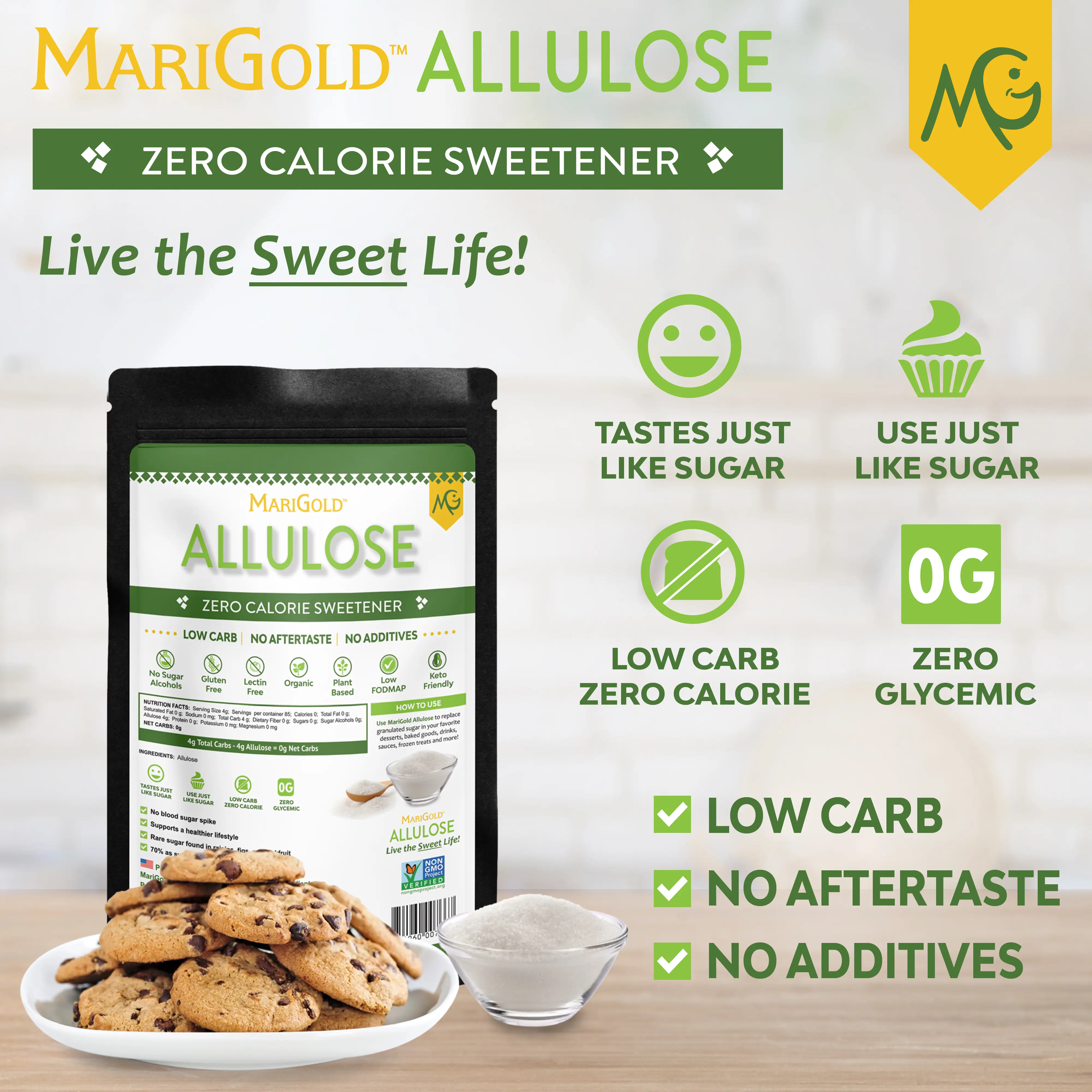 Whether you're baking cookies, stirring up smoothies, or sweetening your coffee, MariGold Allulose fits seamlessly into your favorite recipes.