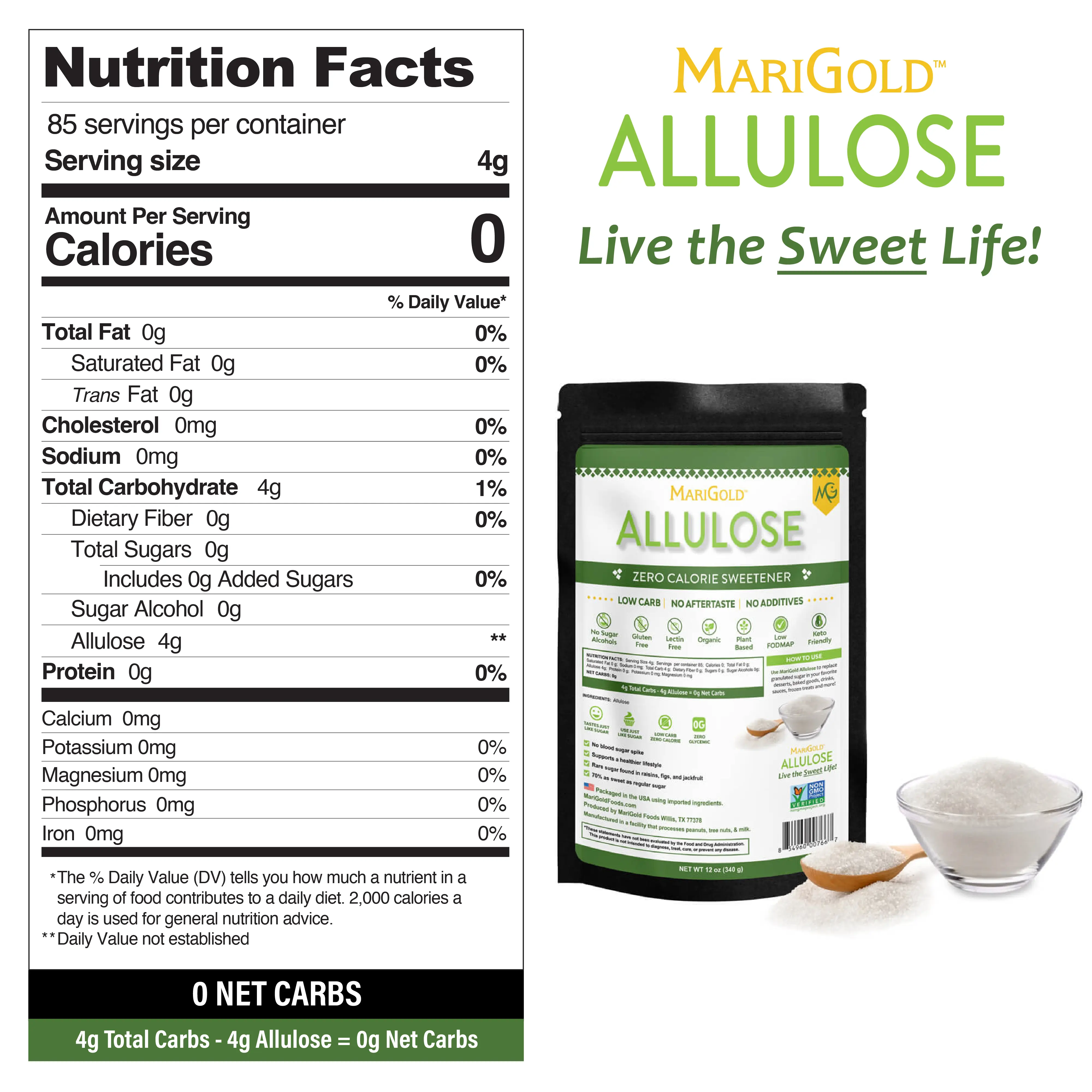 Discover the Sweet Revolution with MariGold Organic Allulose – 12 oz Resealable Pouch