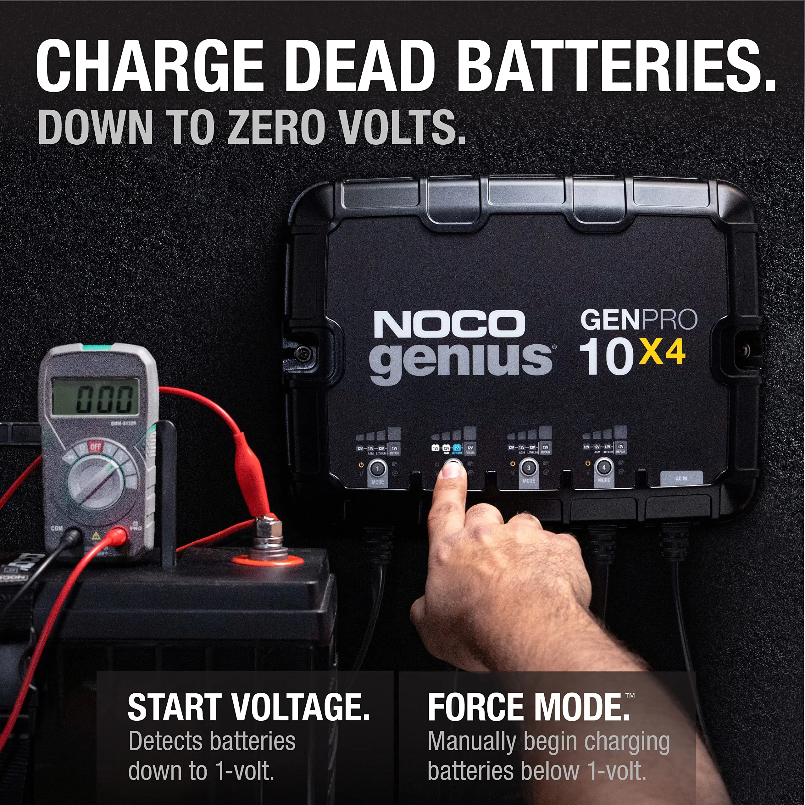 Charge dead batteries - Charges batteries as low as 1-volt. Or use the all-new force mode that allows you to take control and manually begin charging dead batteries down to zero volts.