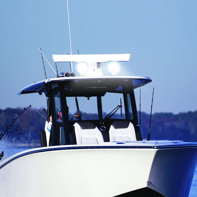 ·【Durable & Waterproof】With solid-build aluminum housing (durable powder coated) and stainless steel mounting bracket and hardware, anti-corrosive, dust-proof, quakeproof, providing great sailing and driving experience. IP67 waterproof, PASS 72-hour laboratory salt spray test, ensures excellent performance even in extreme weather condition like heavy rain, snow, hail, storm, etc