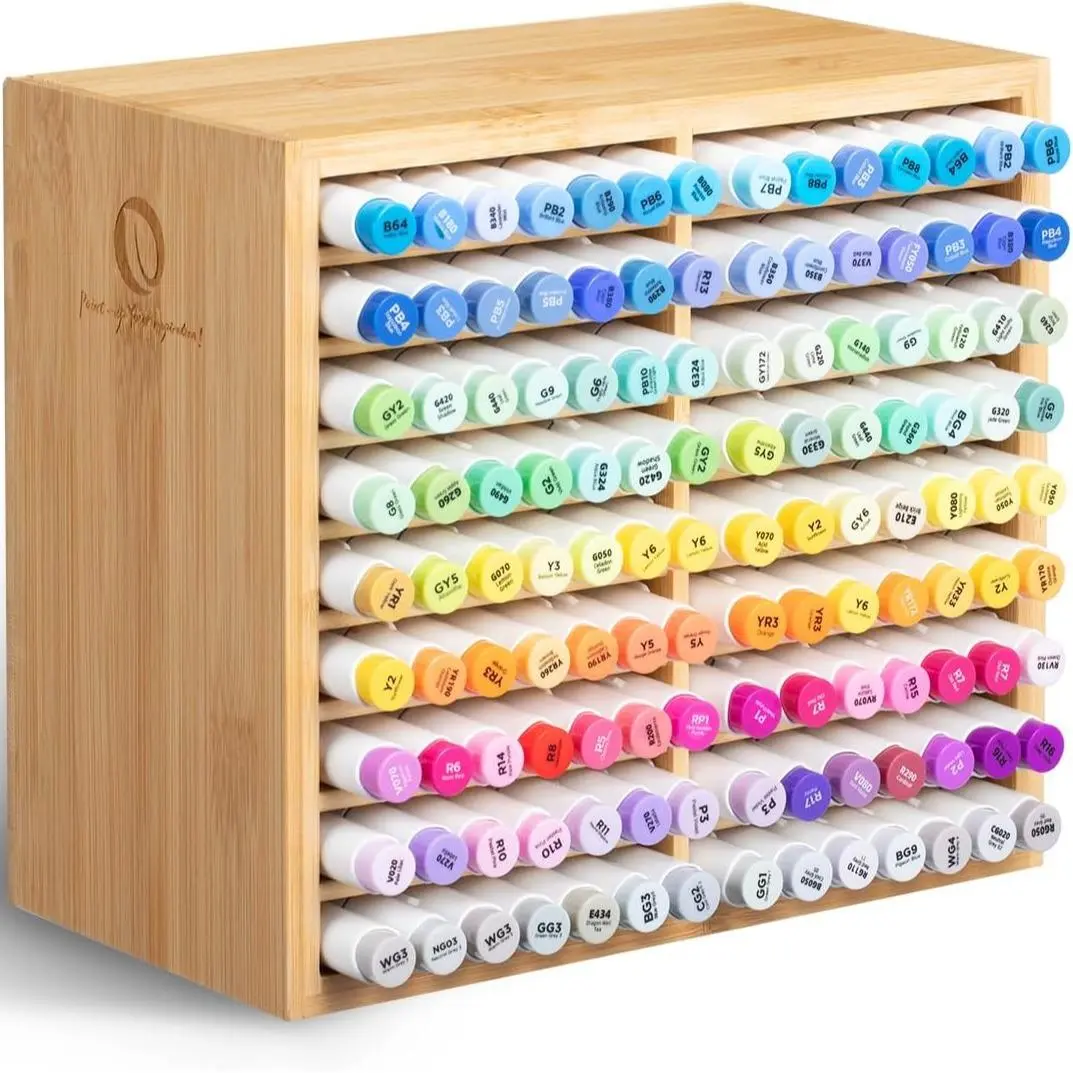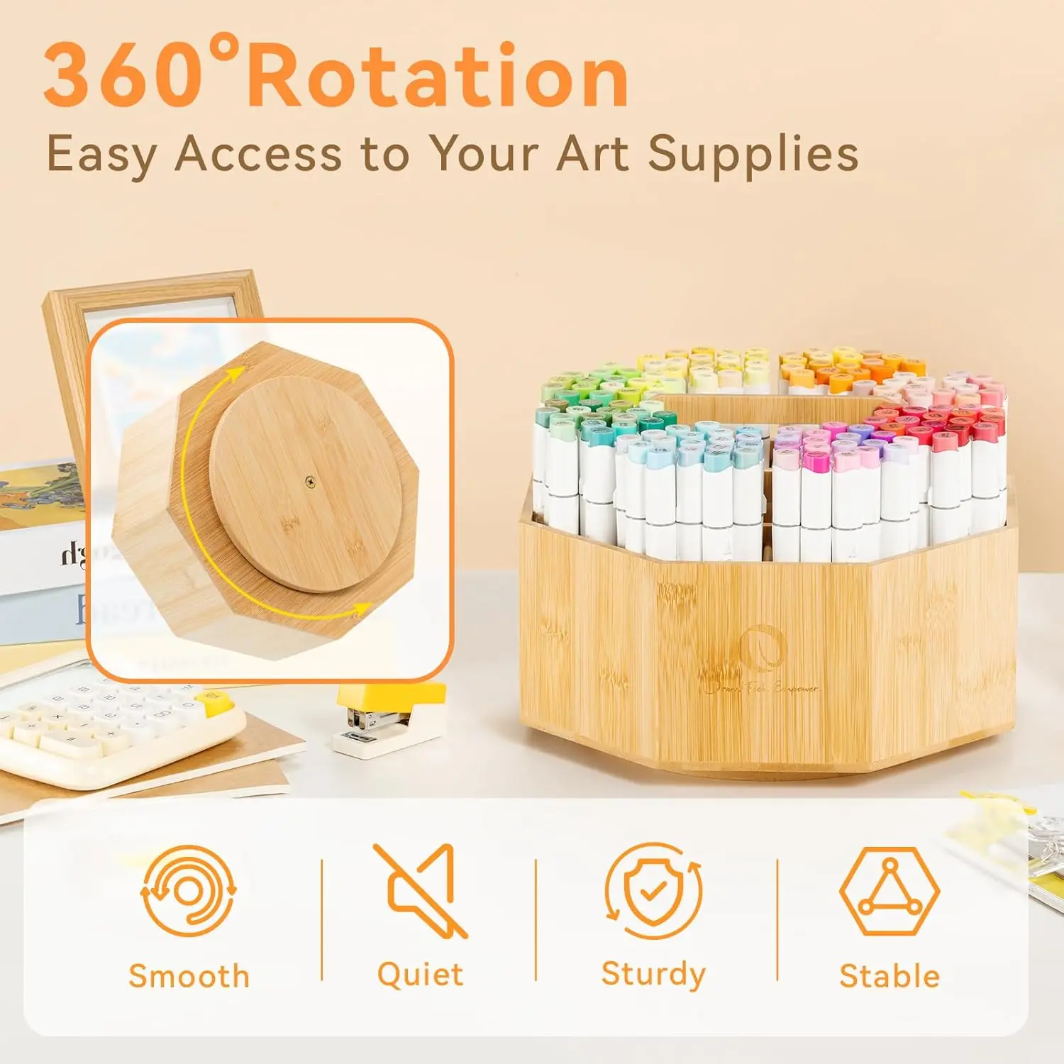 ·CRAFTED WITH ELEGANCE FROM NATURAL BAMBOO: The Ohuhu Bamboo Marker Organizer is expertly made from bamboo, ensuring a high-quality storage solution. It's corrosion-proof, easy to clean, and environmentally friendly.