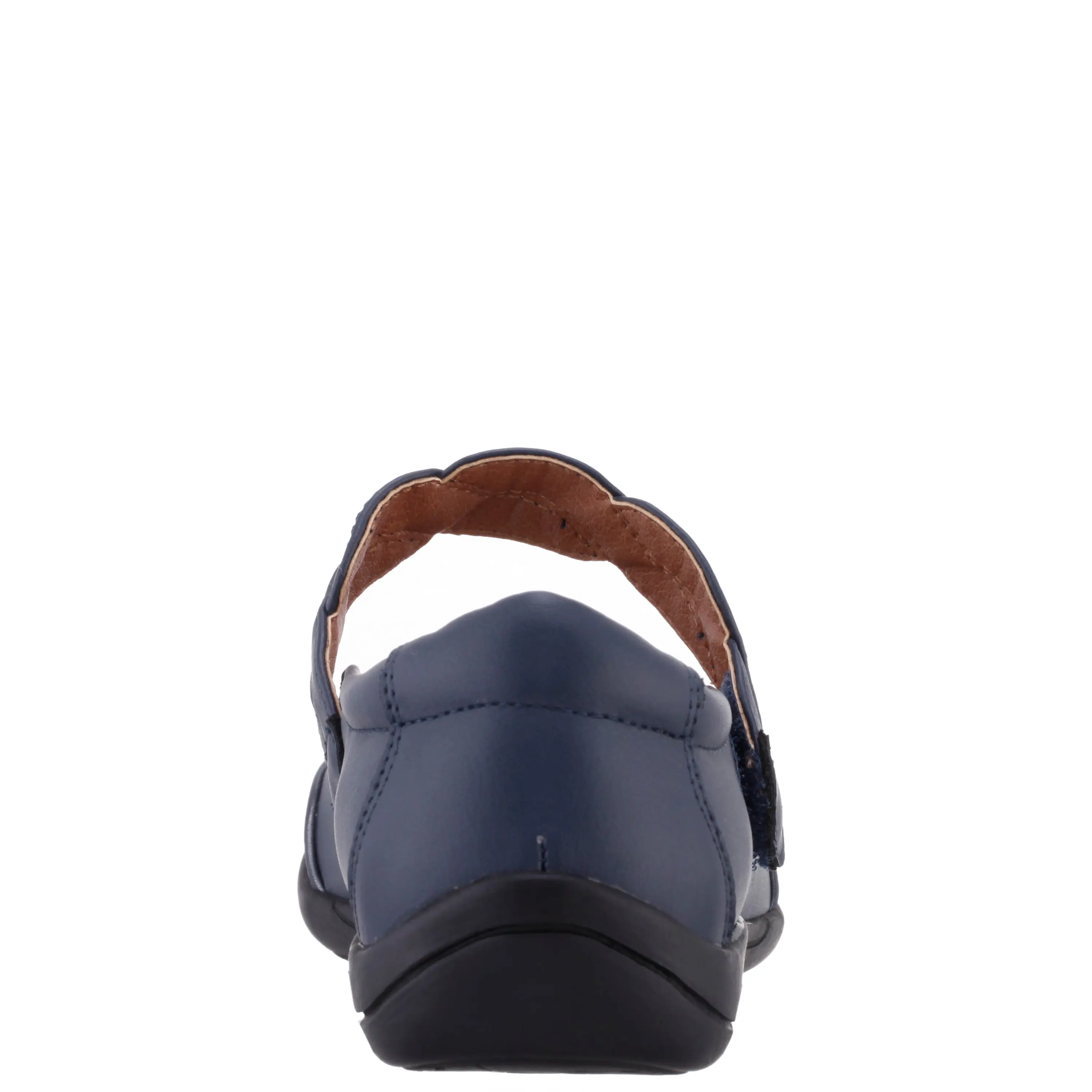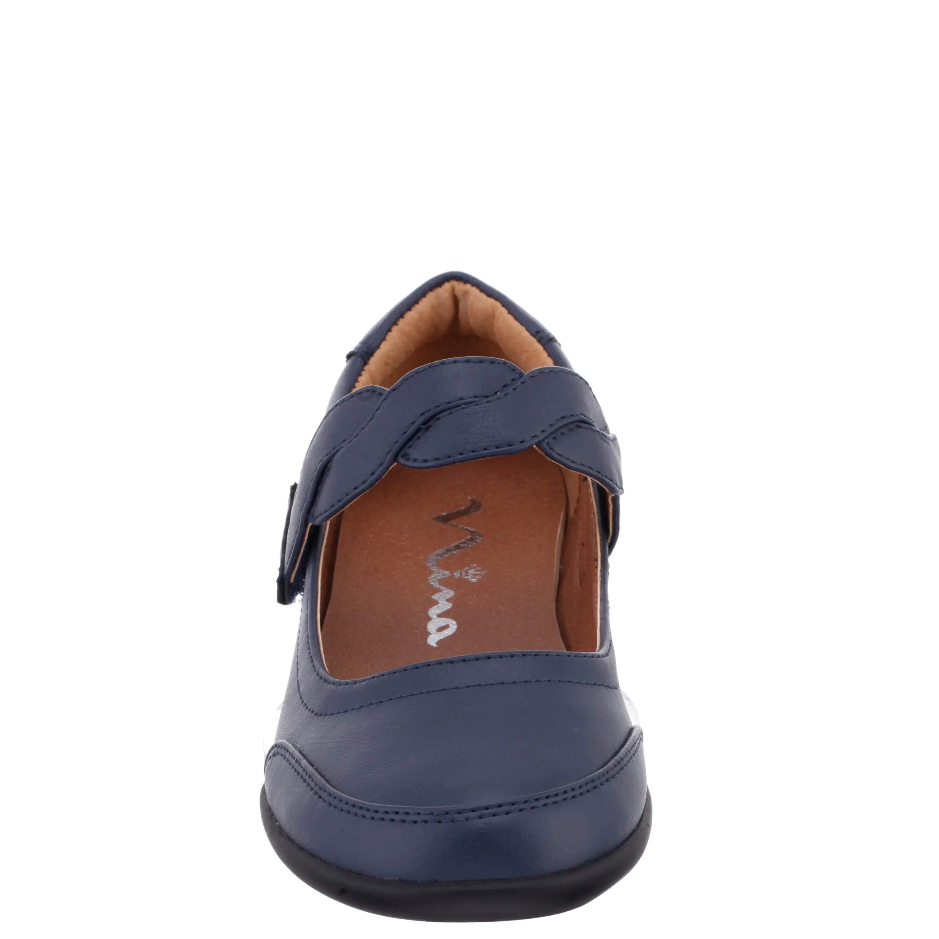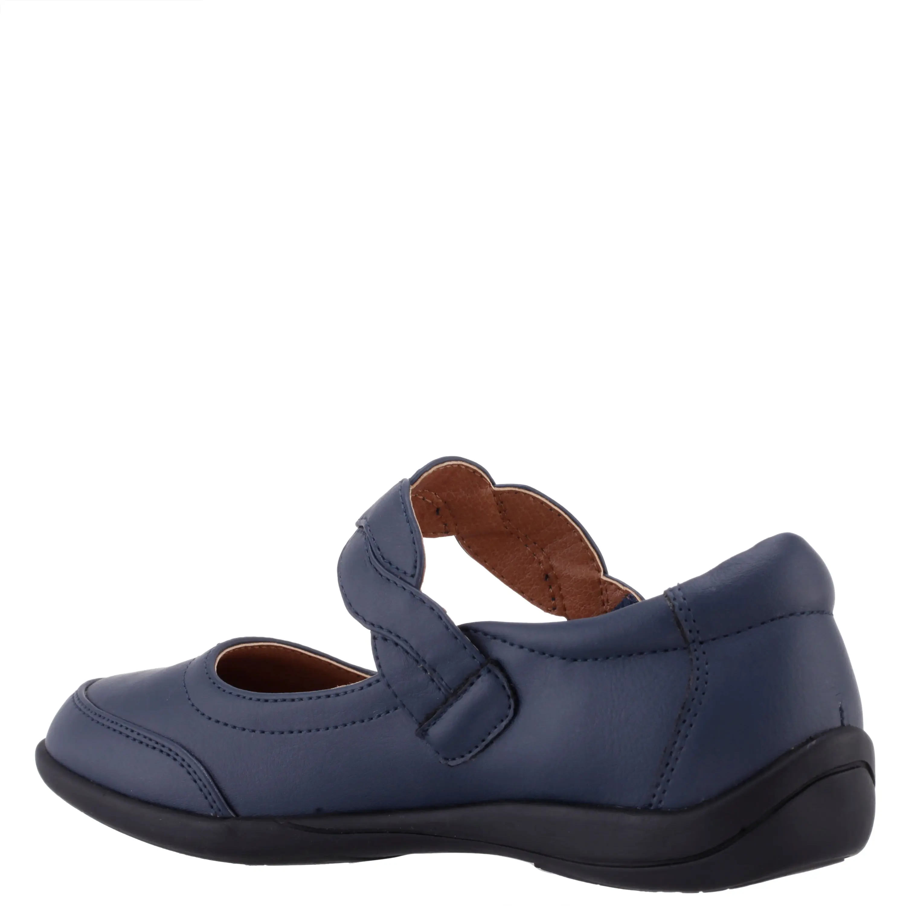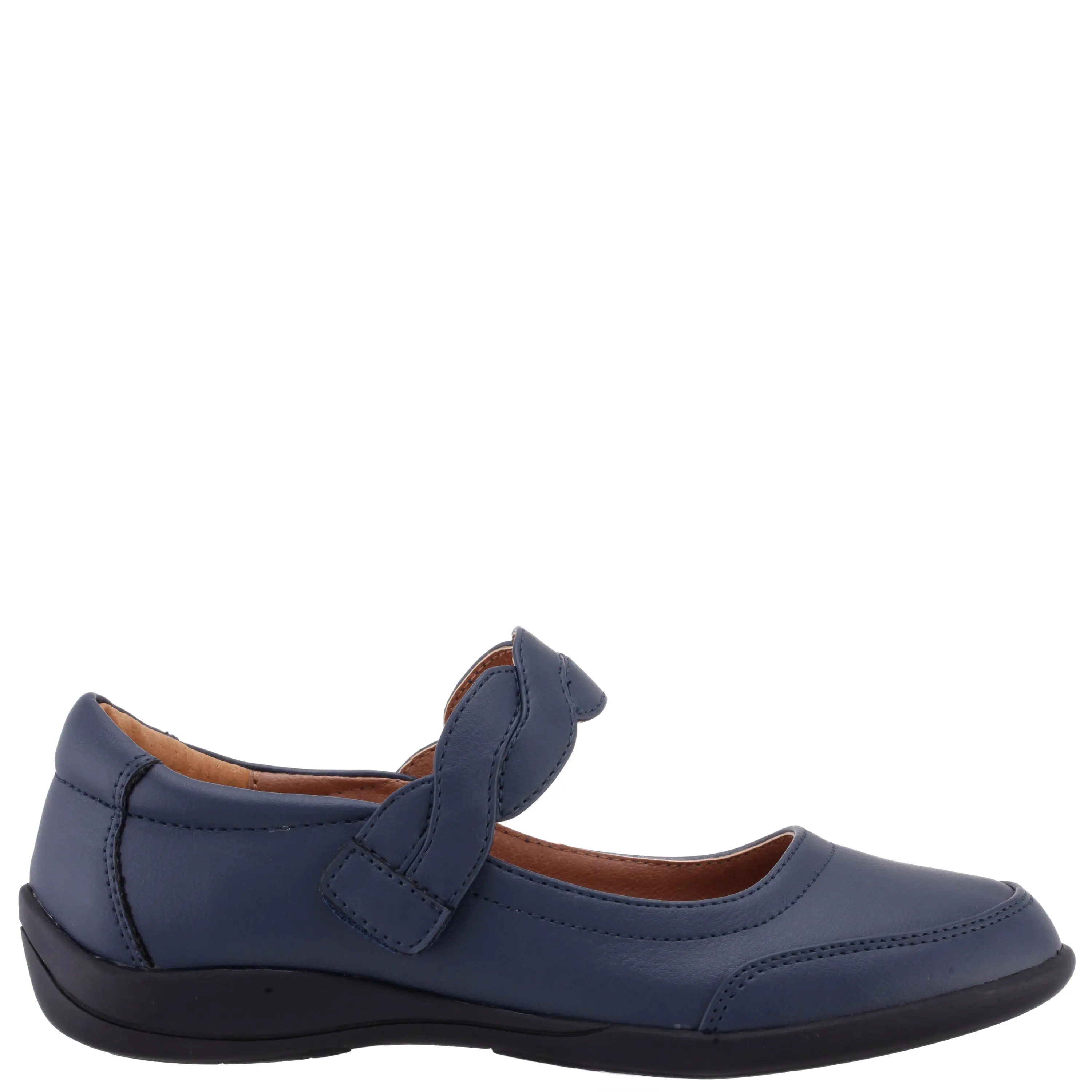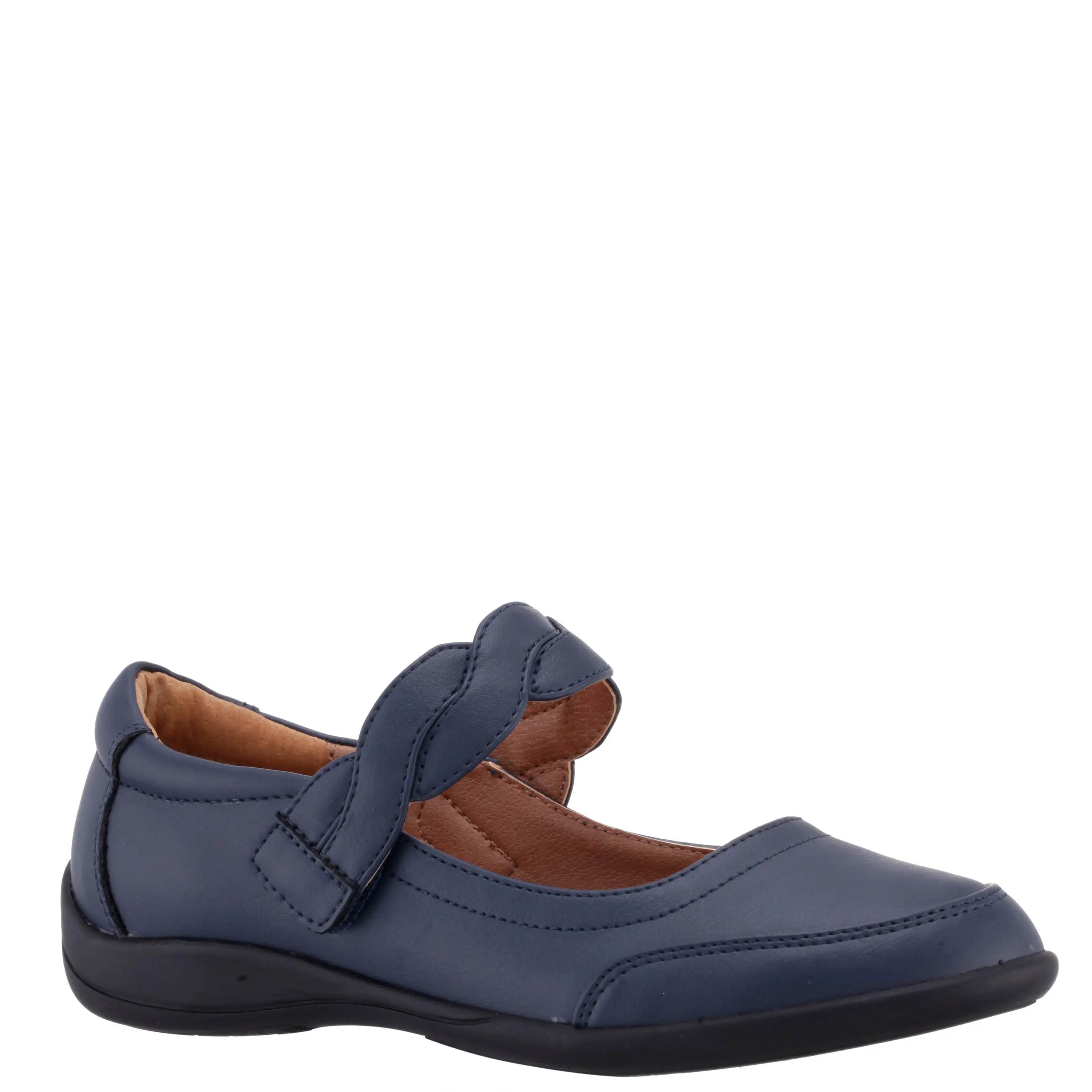 Get back to school in this uber comfy style. The padded collar, flexible outsole and hook and loop strap with decorative woven detail will keep her feeling great and looking poised.