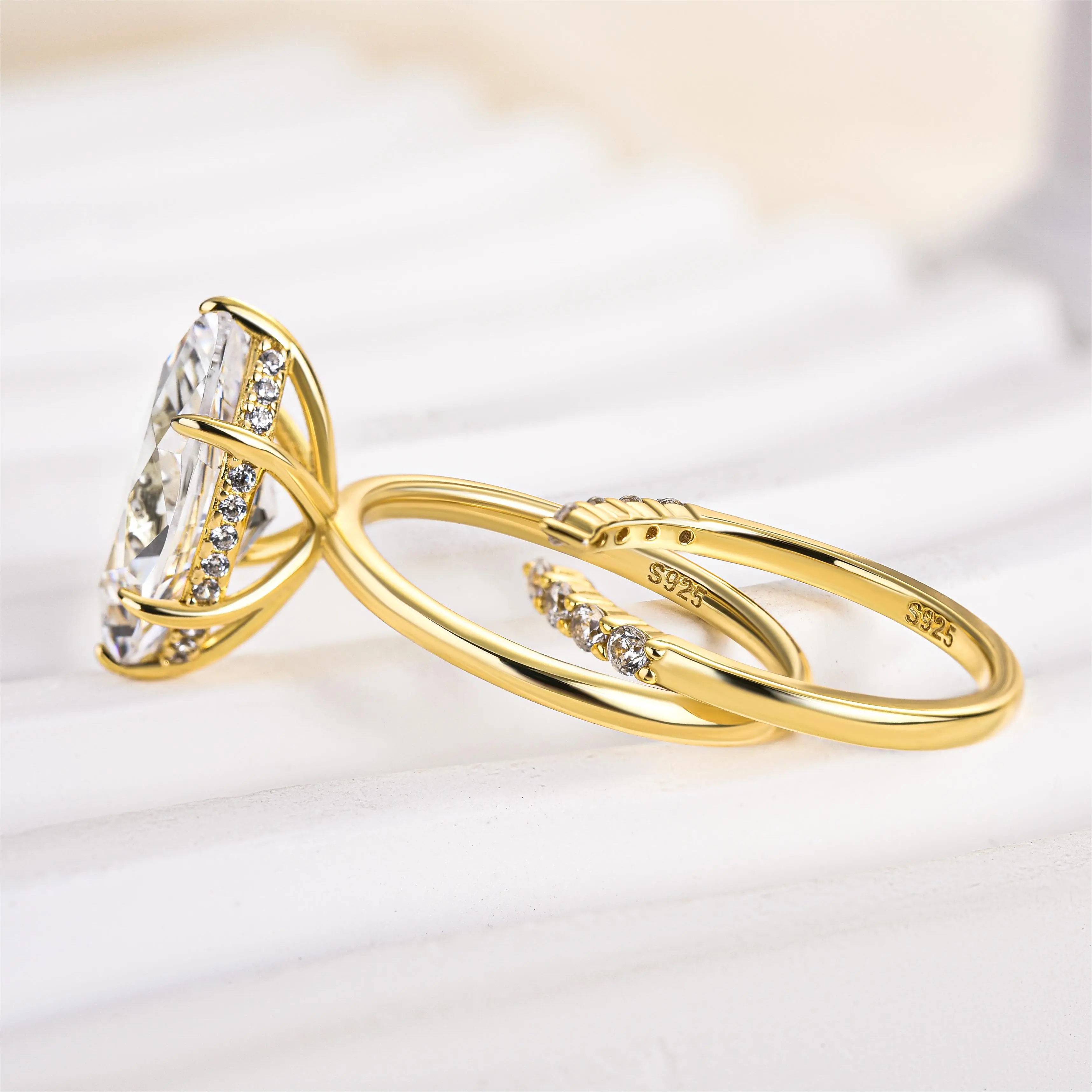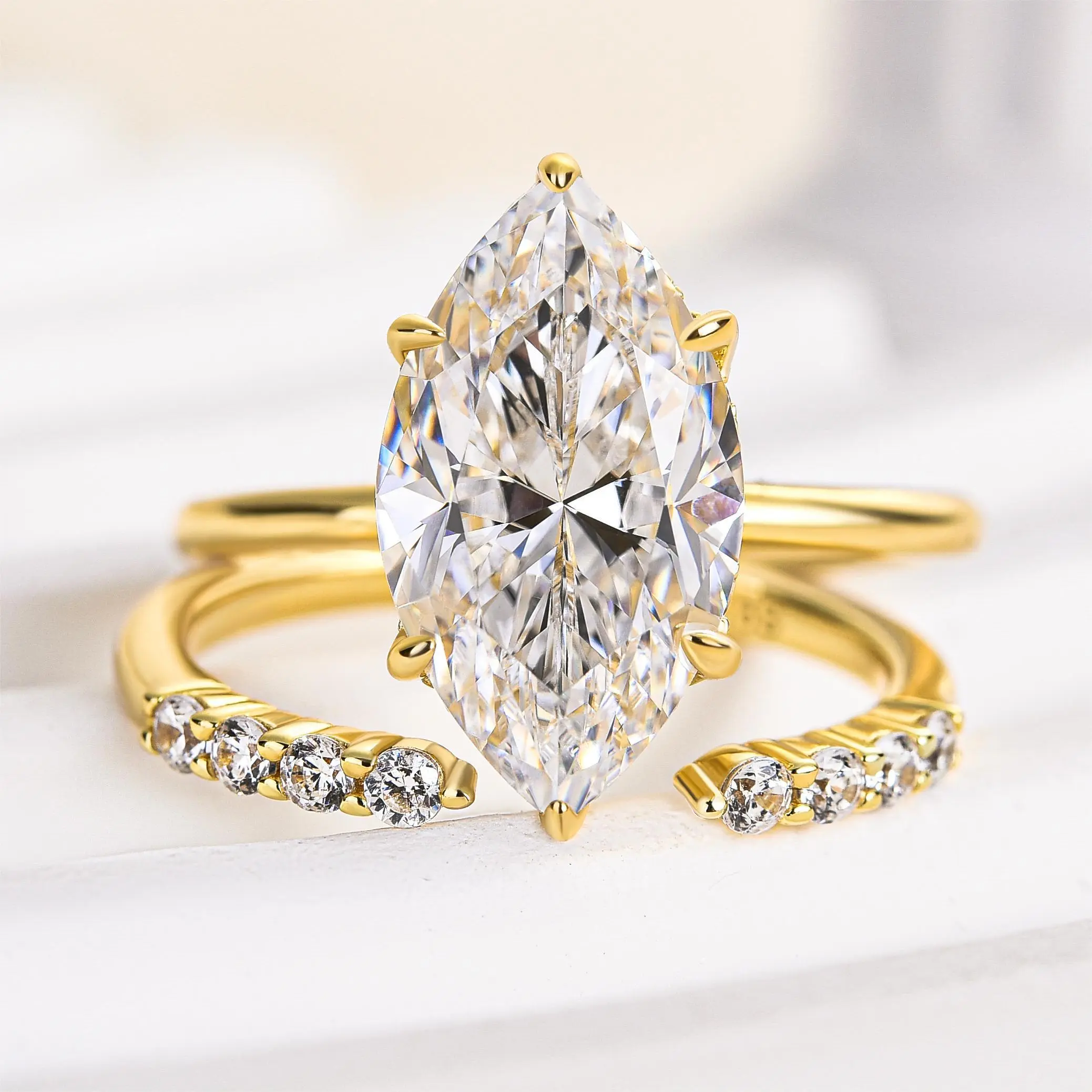 Effinny Marquise Cut 3.5ct Open Wedding Ring Set, S925 Sterling Silver Promise Ring, 5A Cubic Zirconia Bridal Set Rings, Anniversary Ring for Women