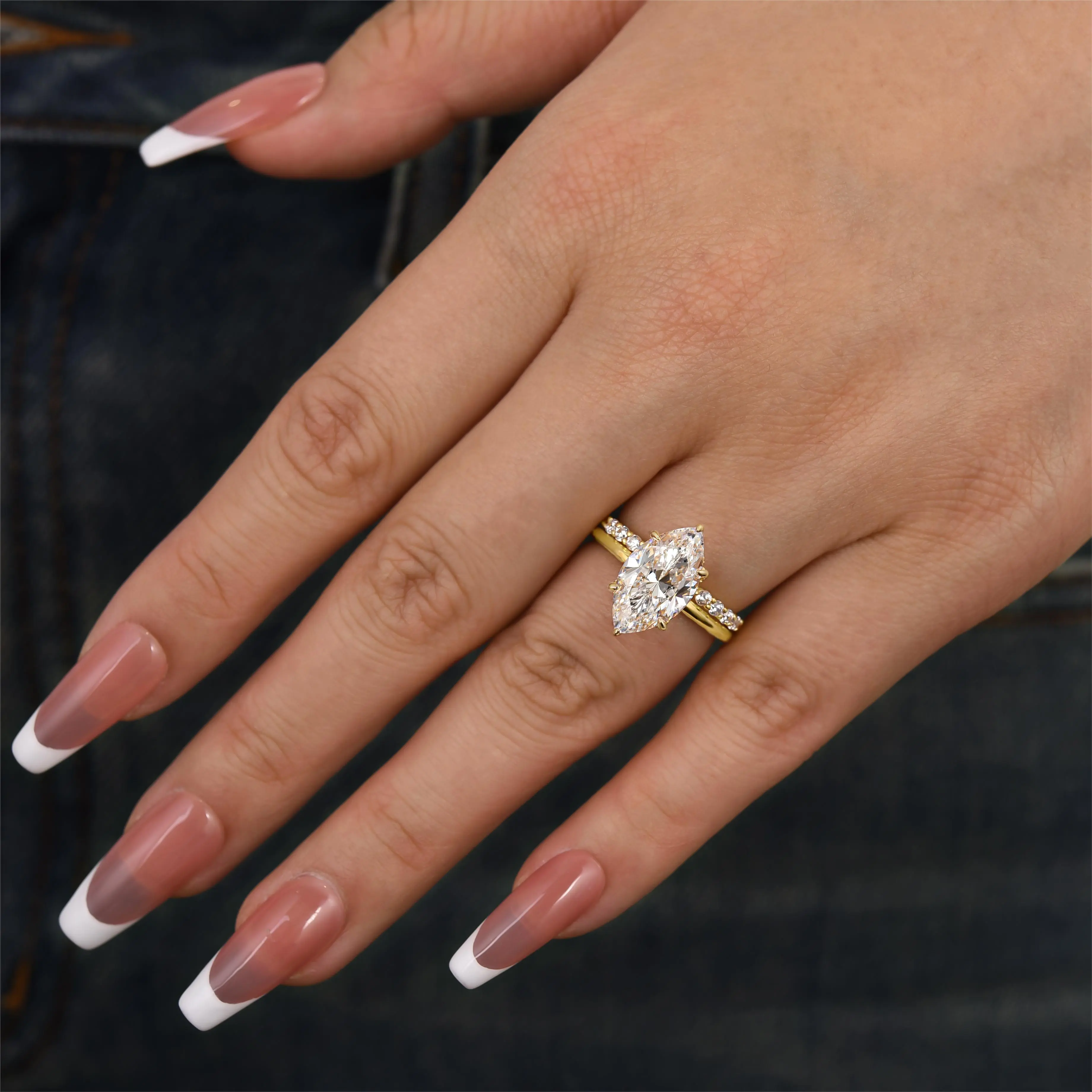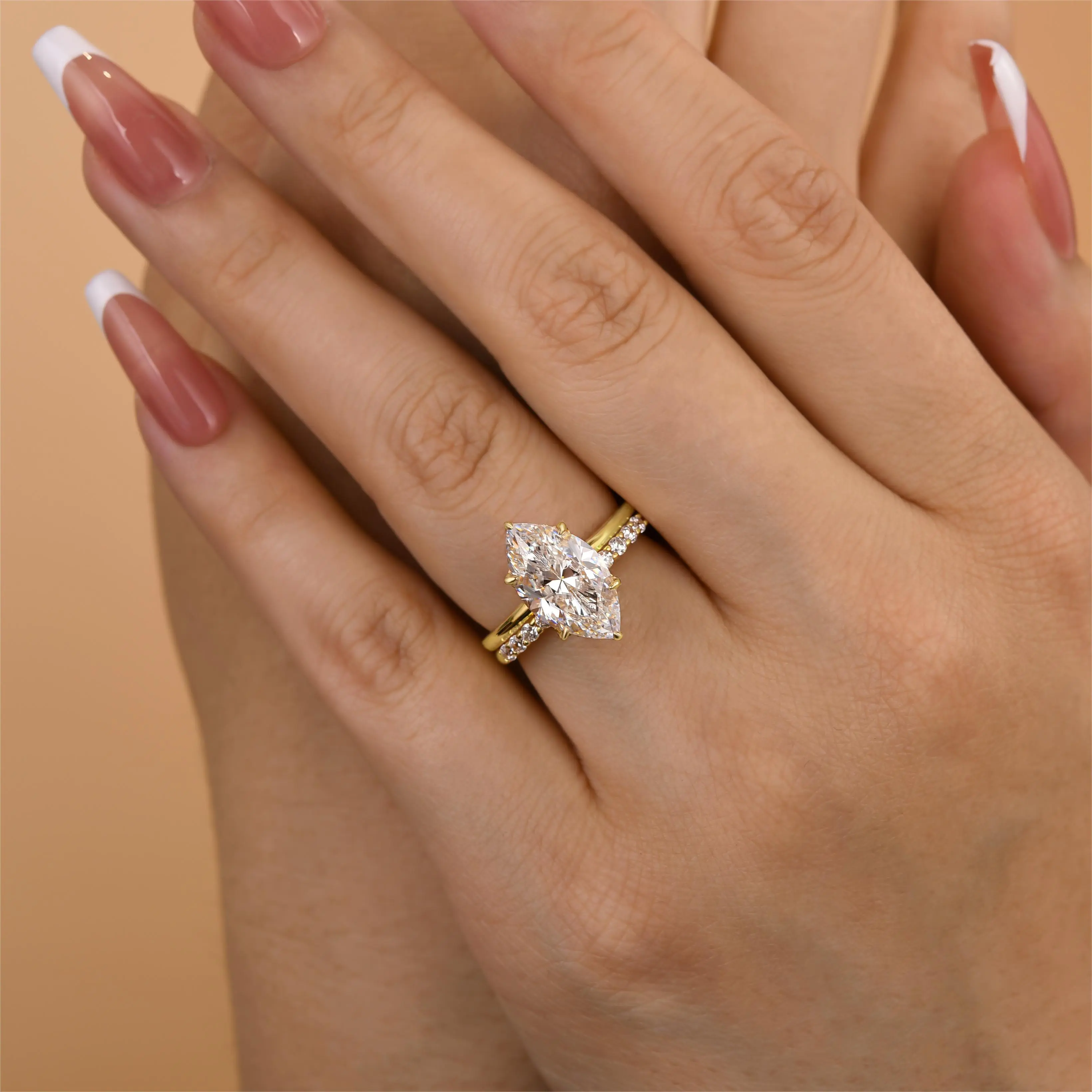 Introducing the Effinny Marquise Cut 3.5ct Open Wedding Ring Set, a true embodiment of elegance and sophistication. This stunning set features a mesmerizing marquise cut centerpiece, elegantly paired with an open band design. Perfect for marking your special moments with a touch of timeless beauty.