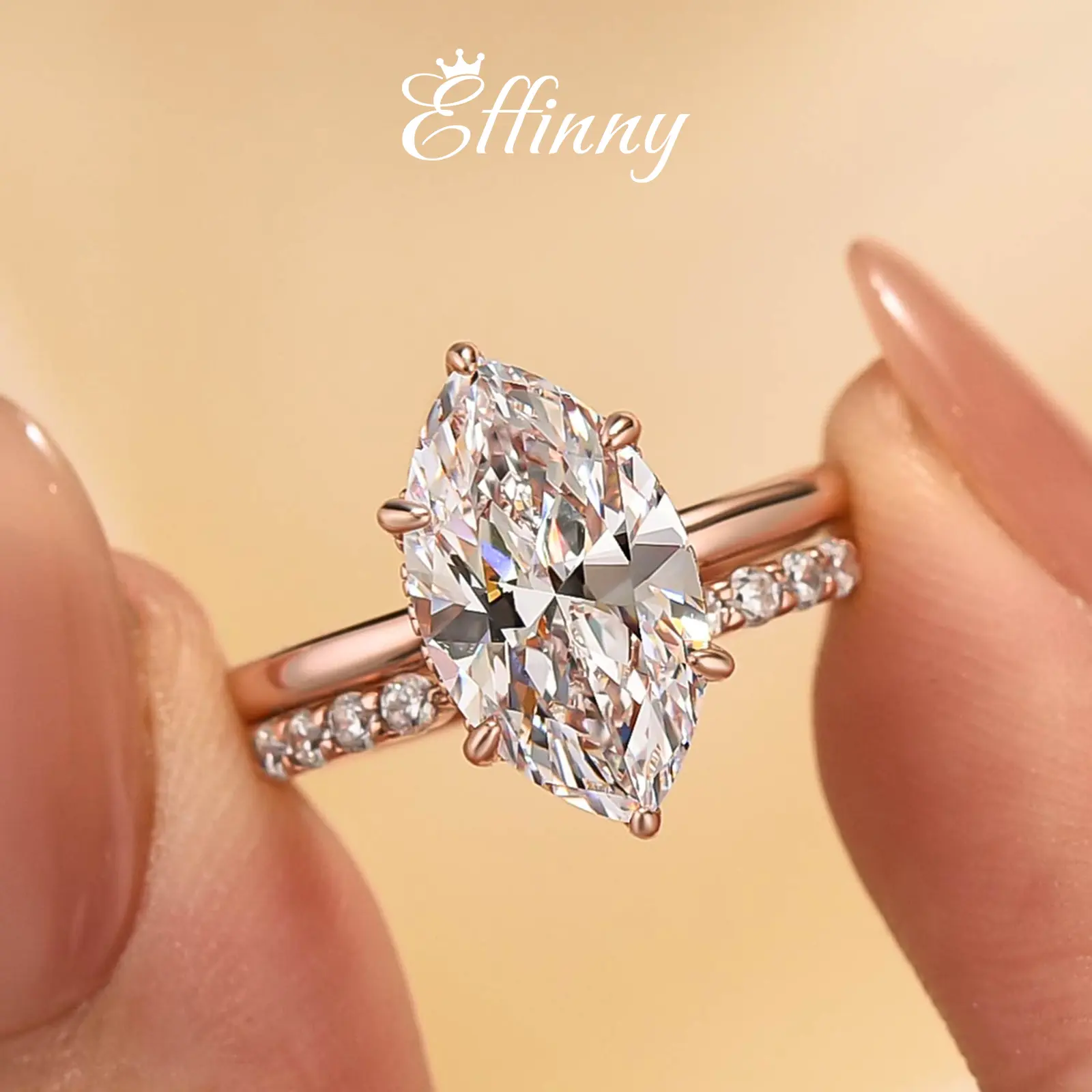 5. Effinny Marquise Cut 3.5ct Open Wedding Ring Set, S925 Sterling Silver Promise Ring, 5A Cubic Zirconia Bridal Set Rings, Anniversary Ring for Women