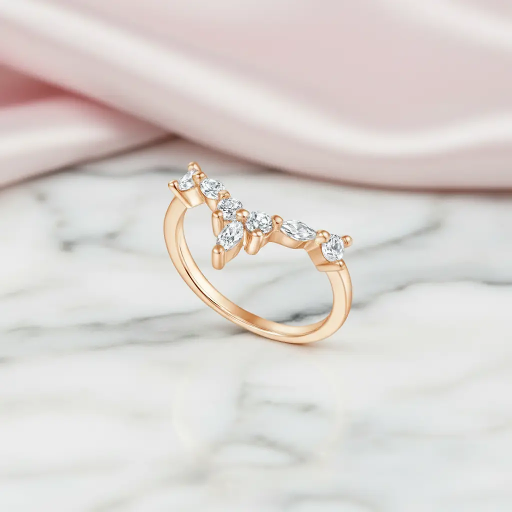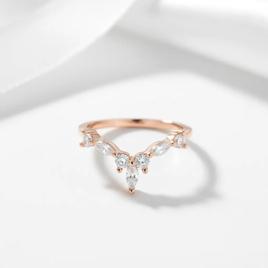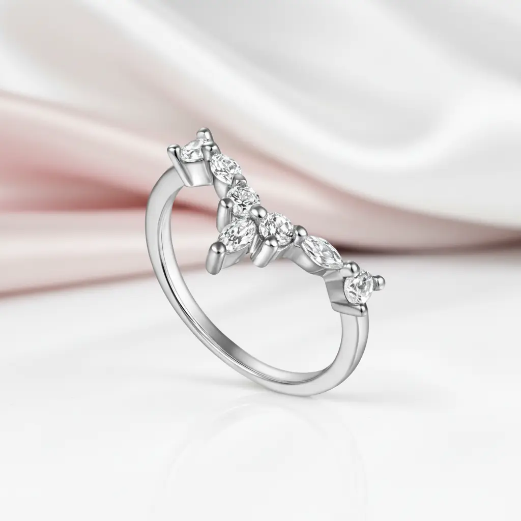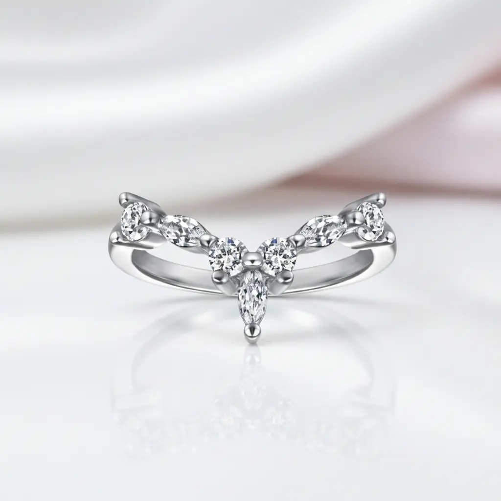 Marquise Cut Stackable V Shape Wedding Band