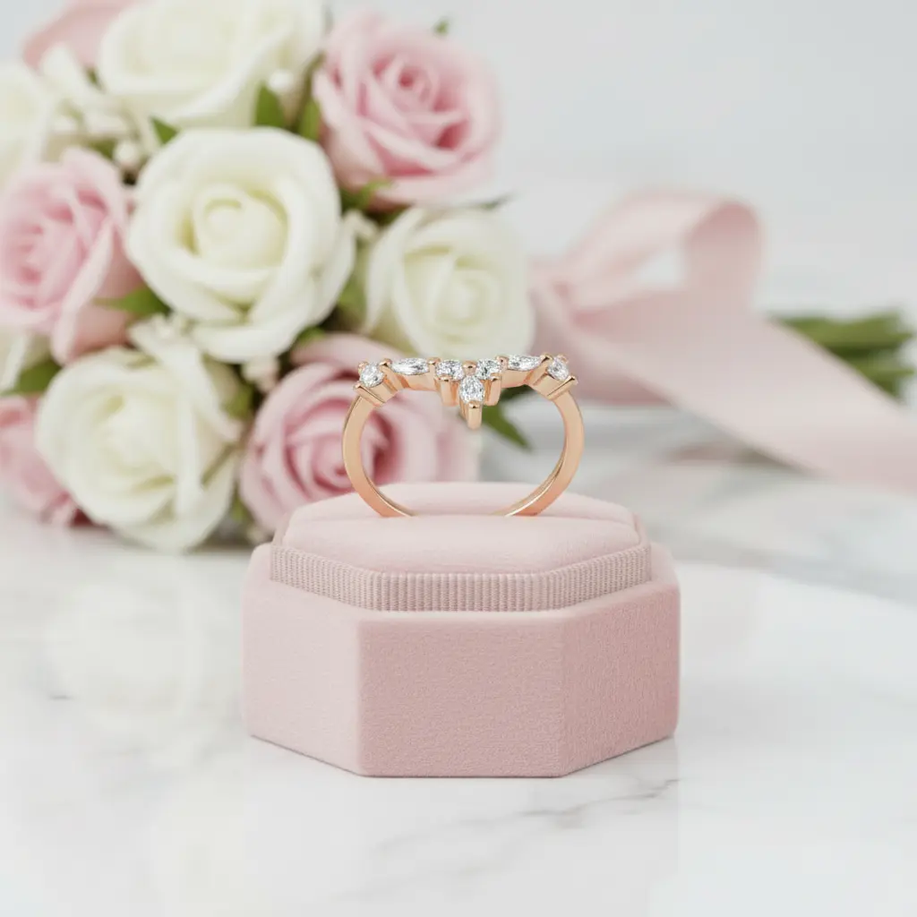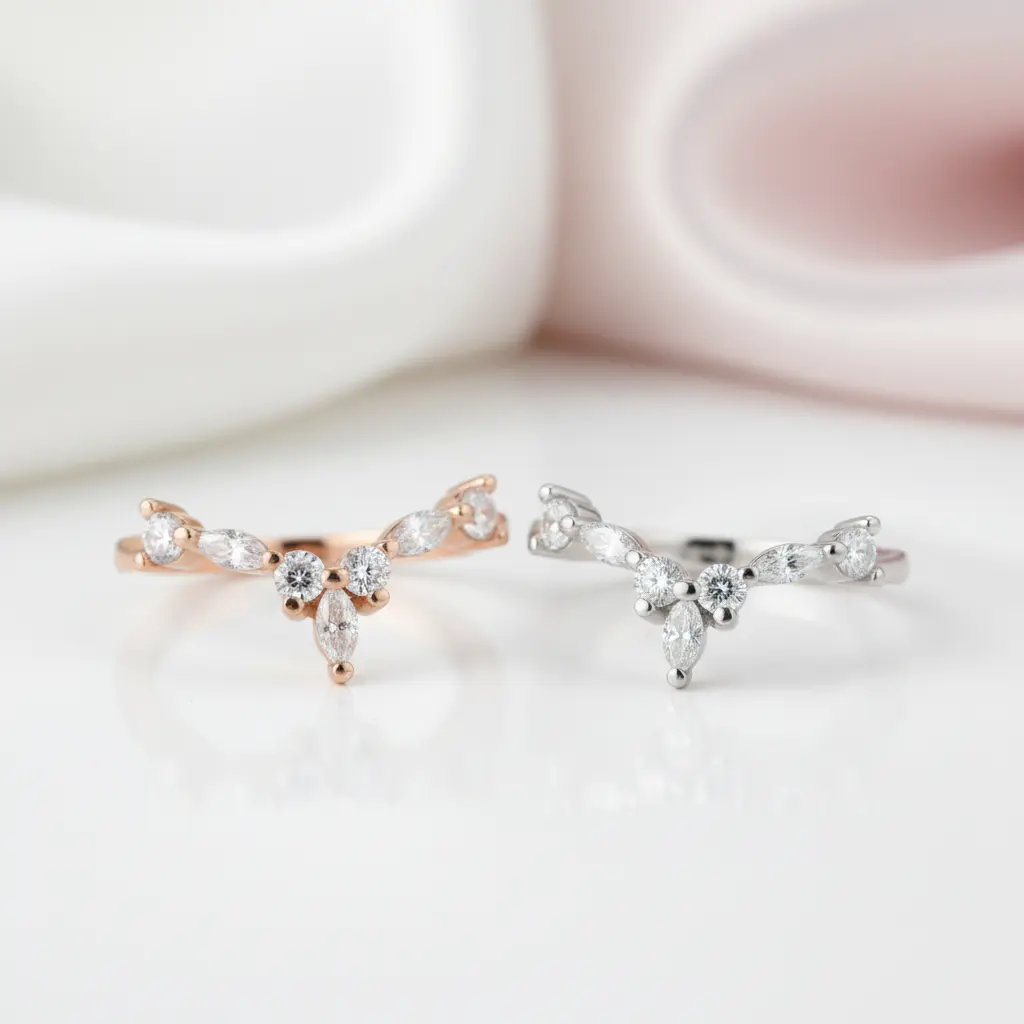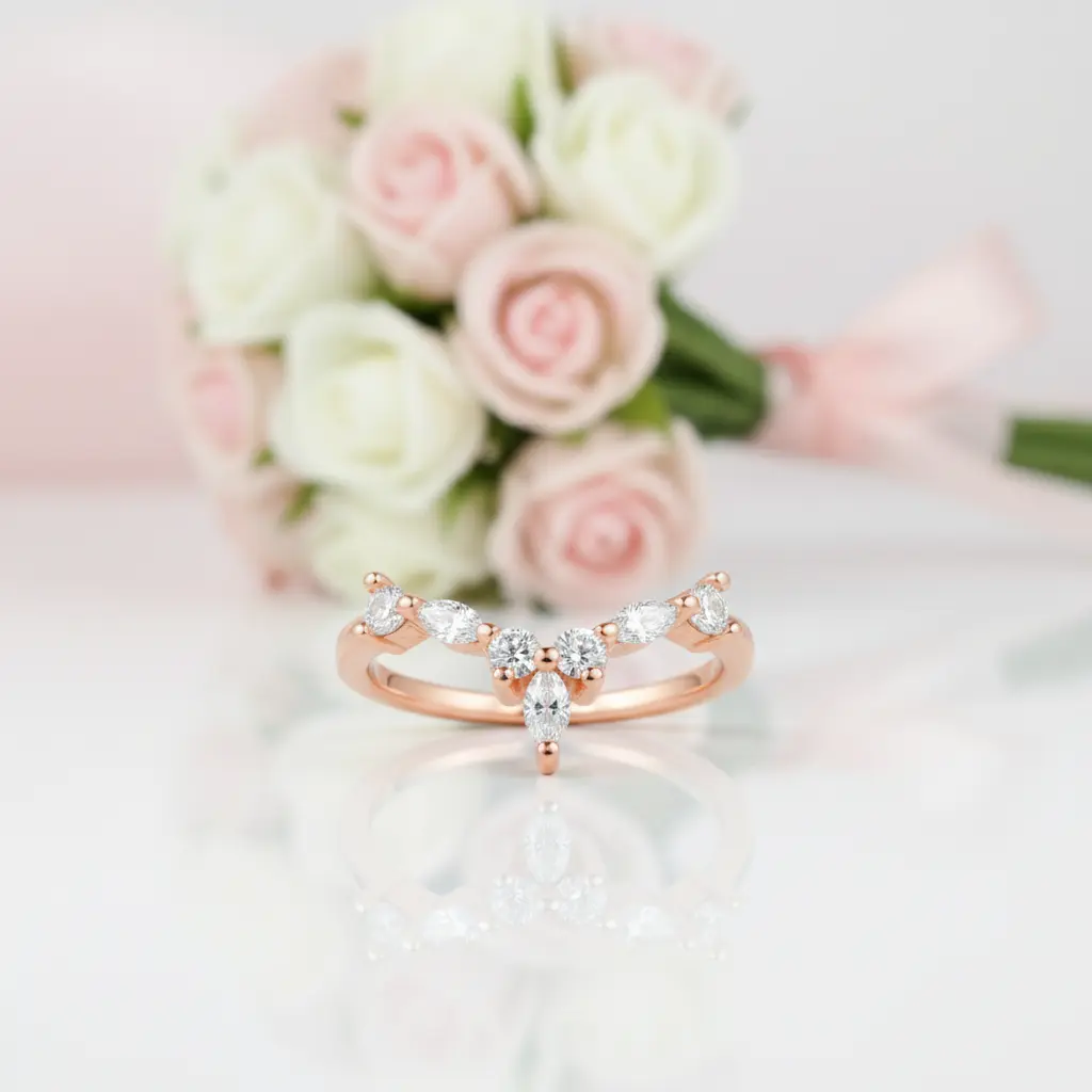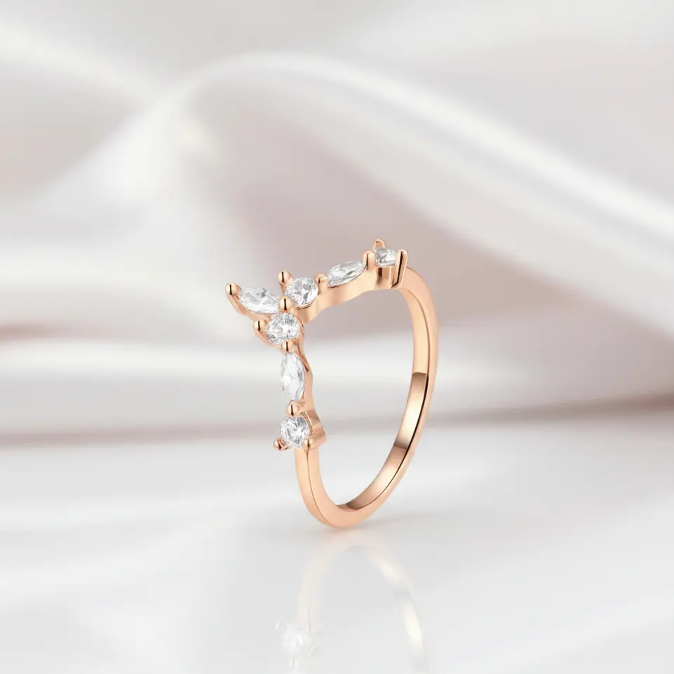 Marquise Cut Stackable V Shape Wedding Band