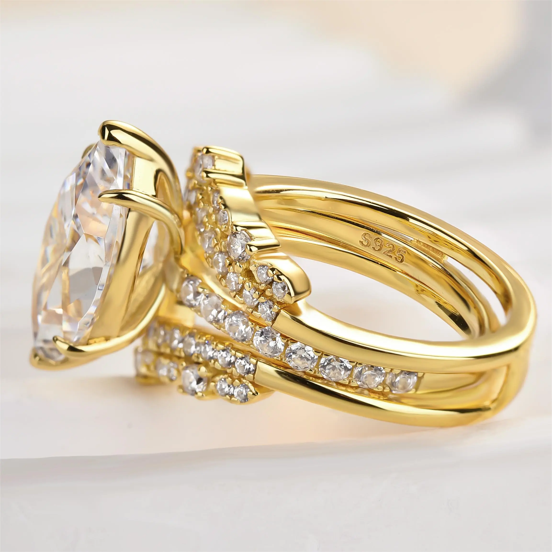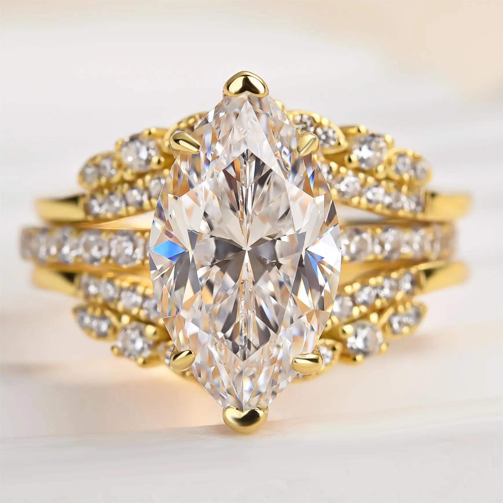 Effinny Marquise Cut Insert Ring Set #weddingring #effinnyring #engagementring #jewelry #jewelrylove #falldealsforyou #ringset #weddingringset #marquisecut